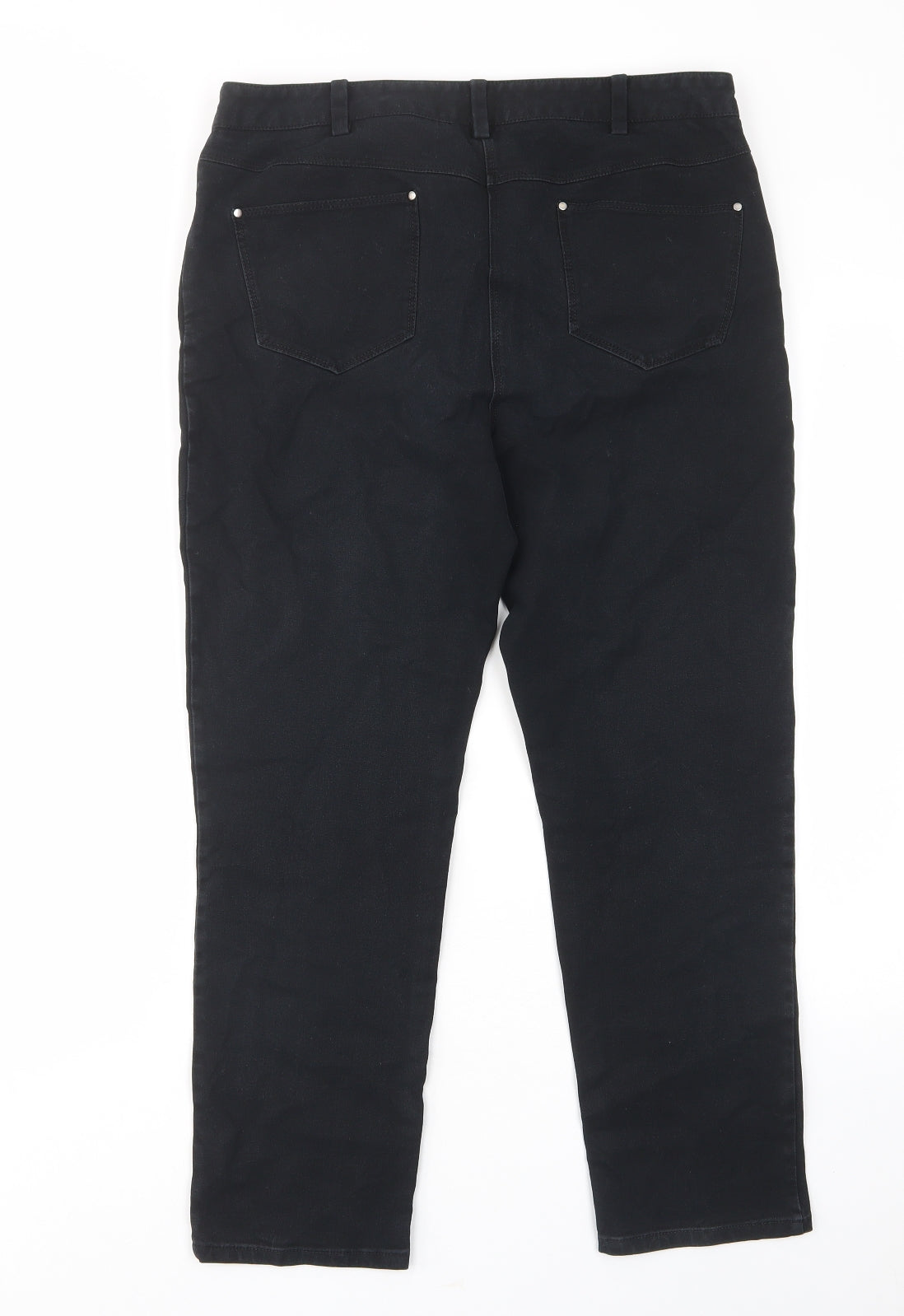 Pure Womens Black Cotton Straight Jeans Size 14 L25 in Regular Zip - Pockets, Belt Loops