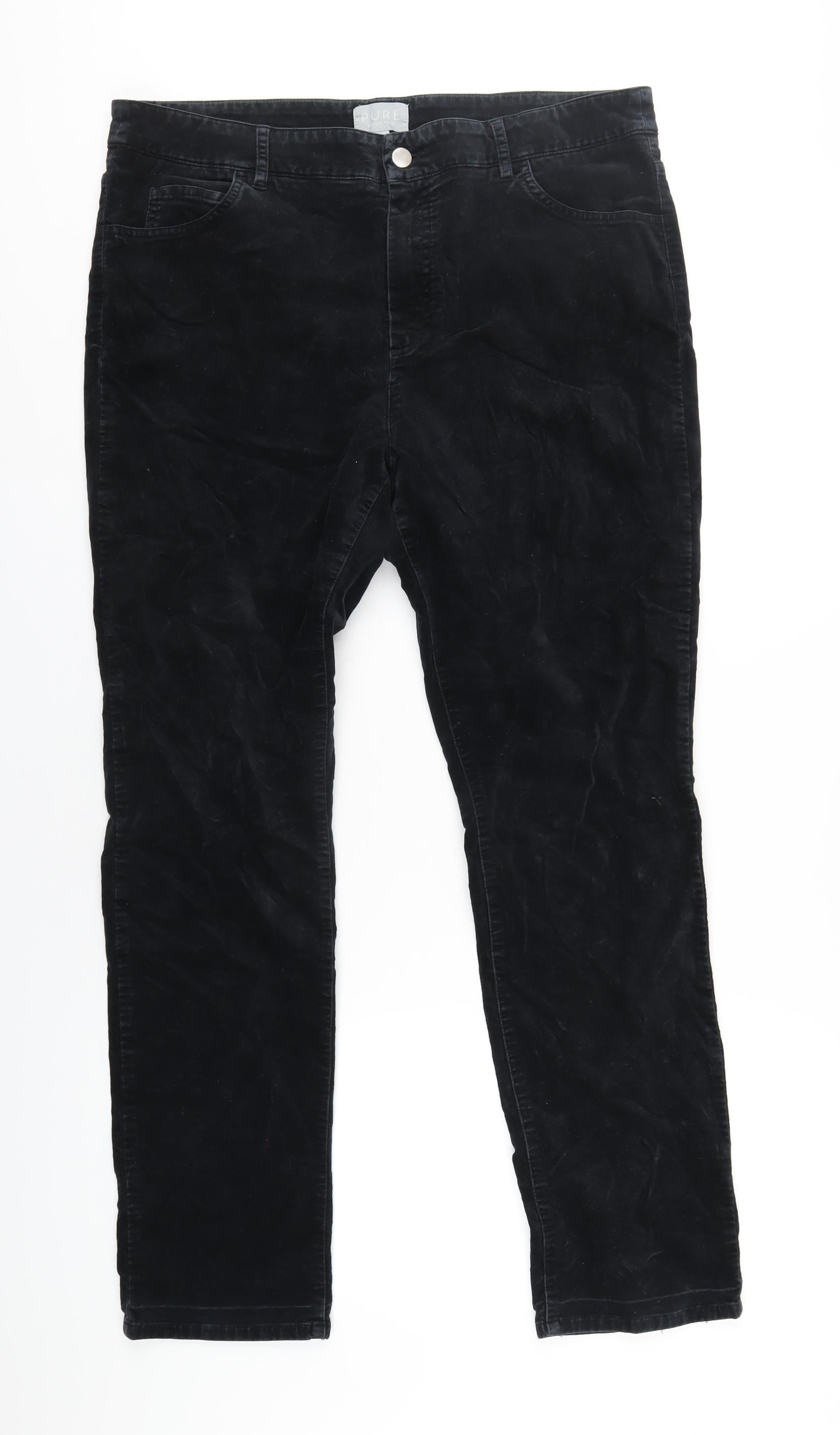 Pure Womens Black Cotton Trousers Size 18 L30 in Regular Zip