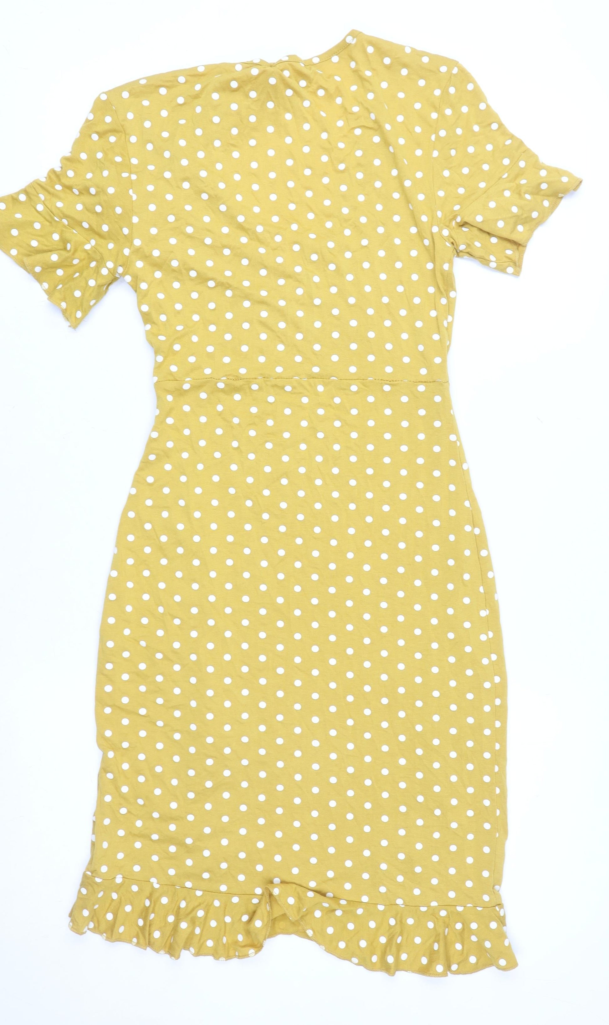 QED London Women Yellow Polka Dot Wrap Midi Dress Size 10
