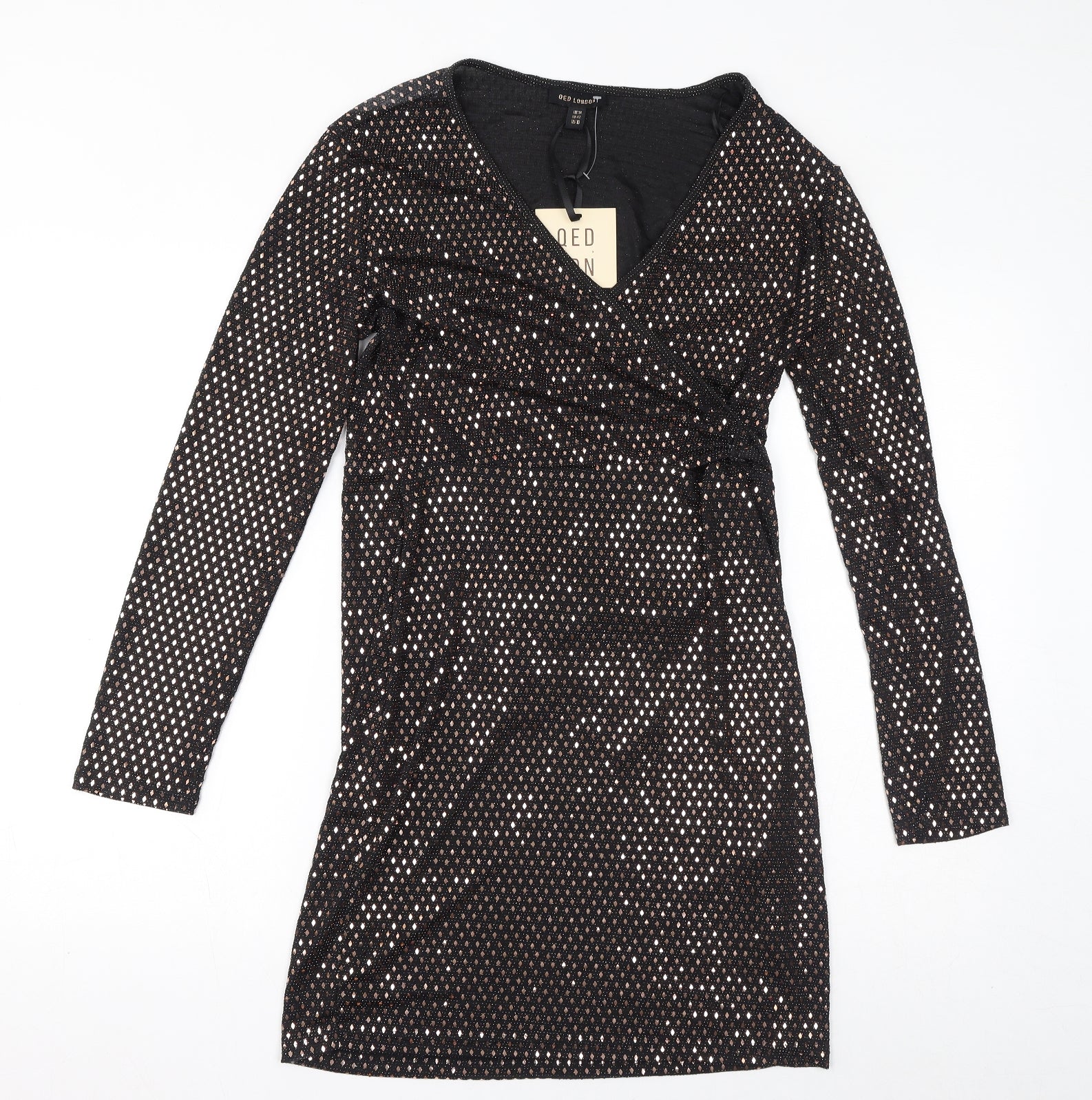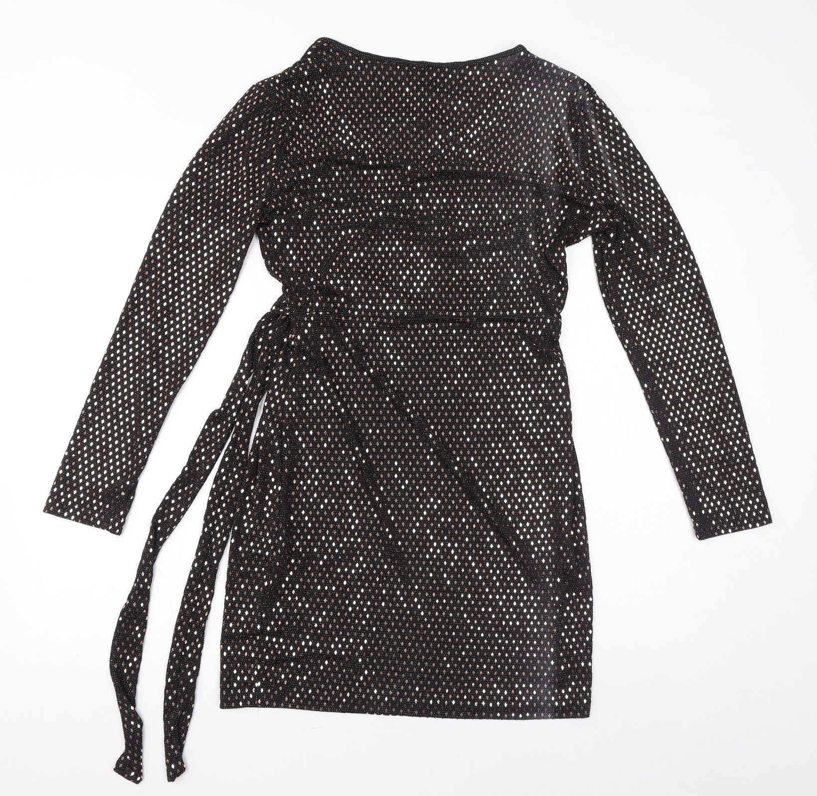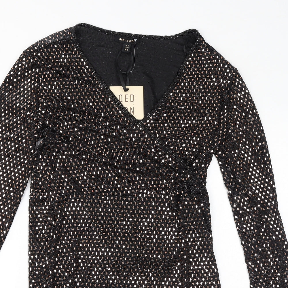 QED London Womens Black Polyester Bodycon Size 14 V-Neck Tie