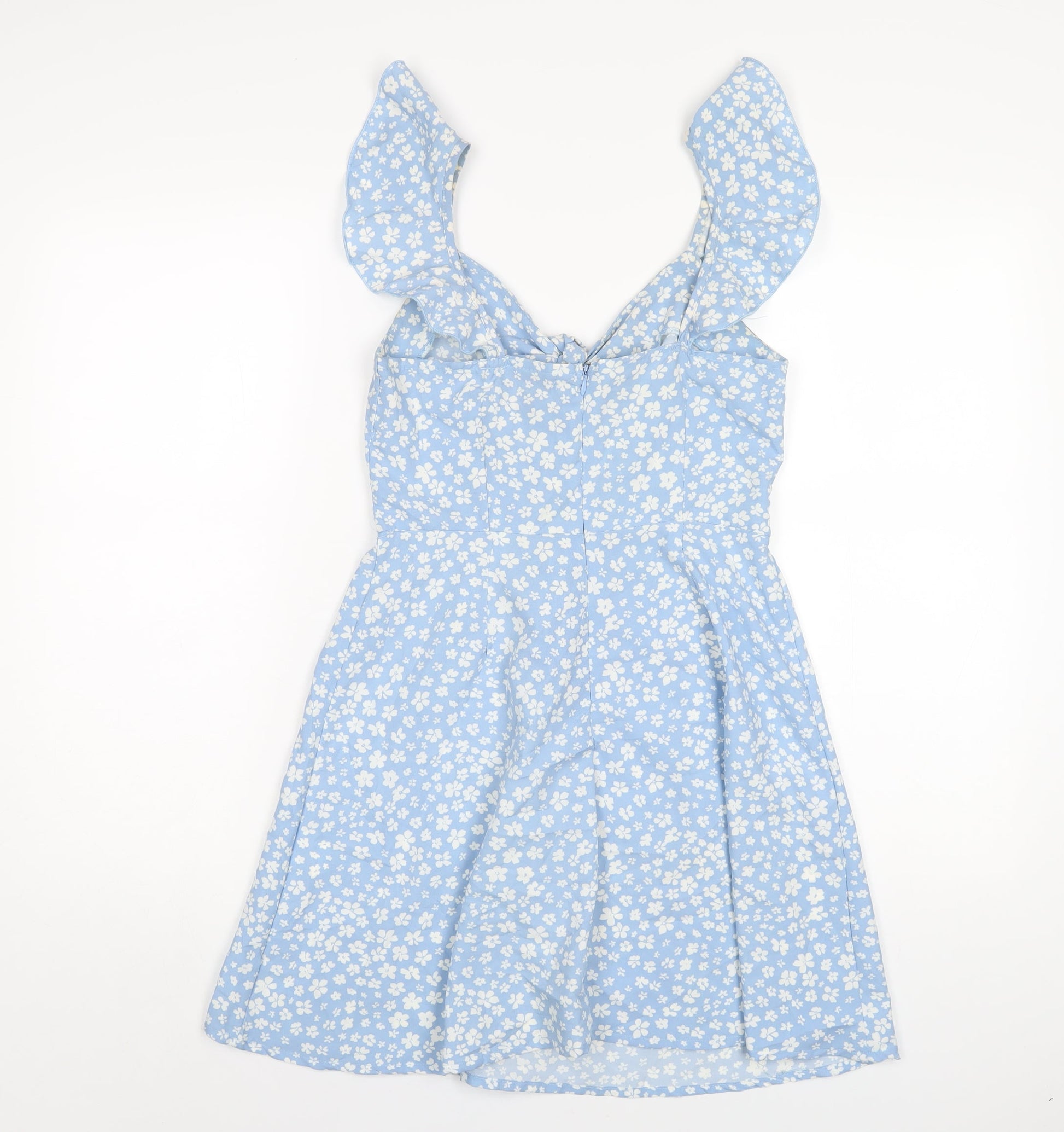 QED London Womens Blue Floral Polyester A-Line Size 6 V-Neck Zip