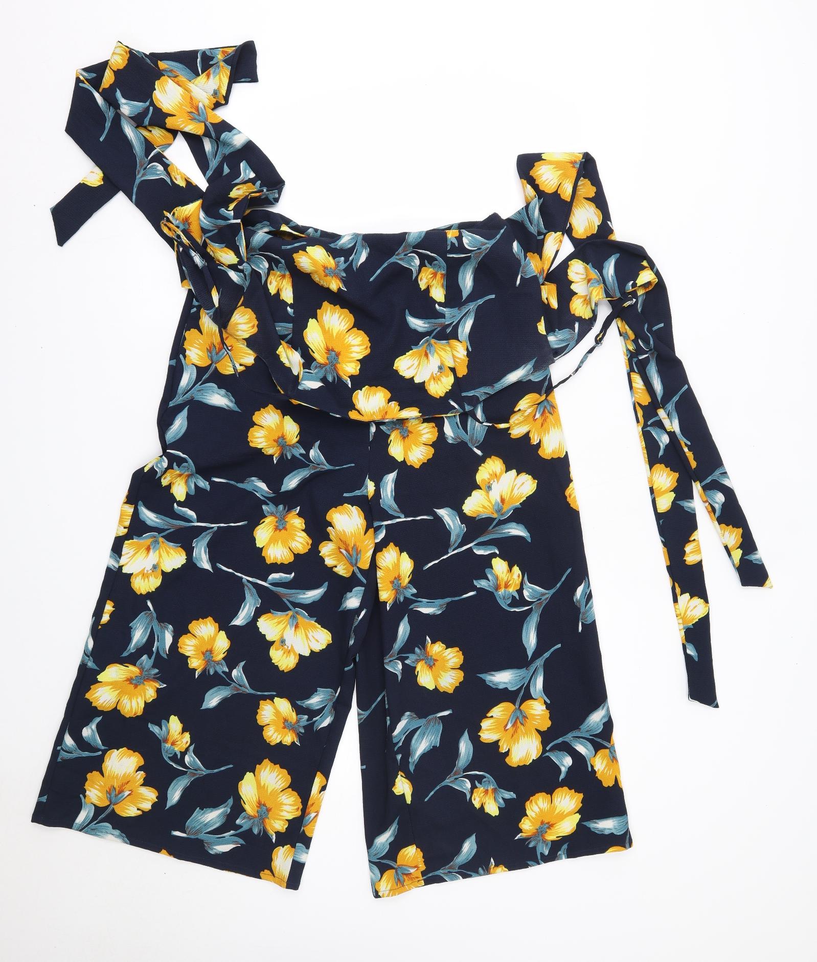 QED London Womens Blue Floral Polyester Trousers Size 12 L20 in Regular