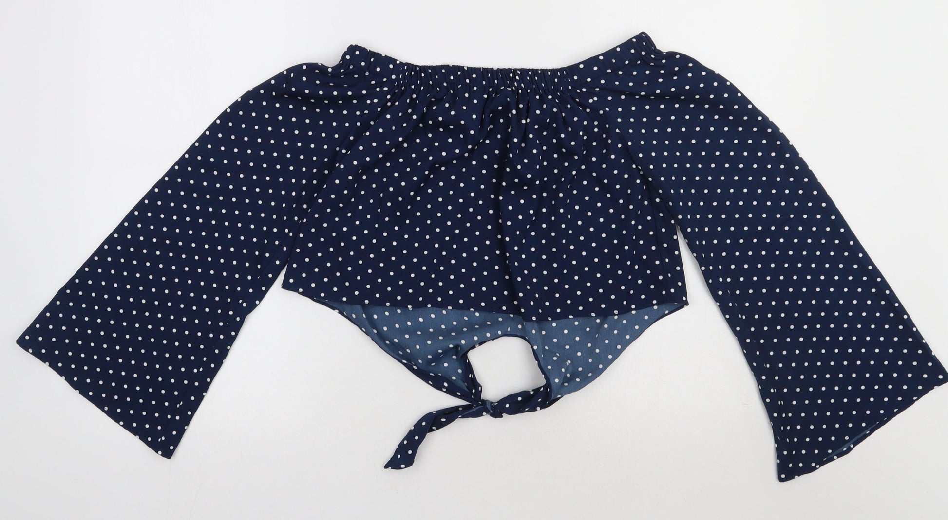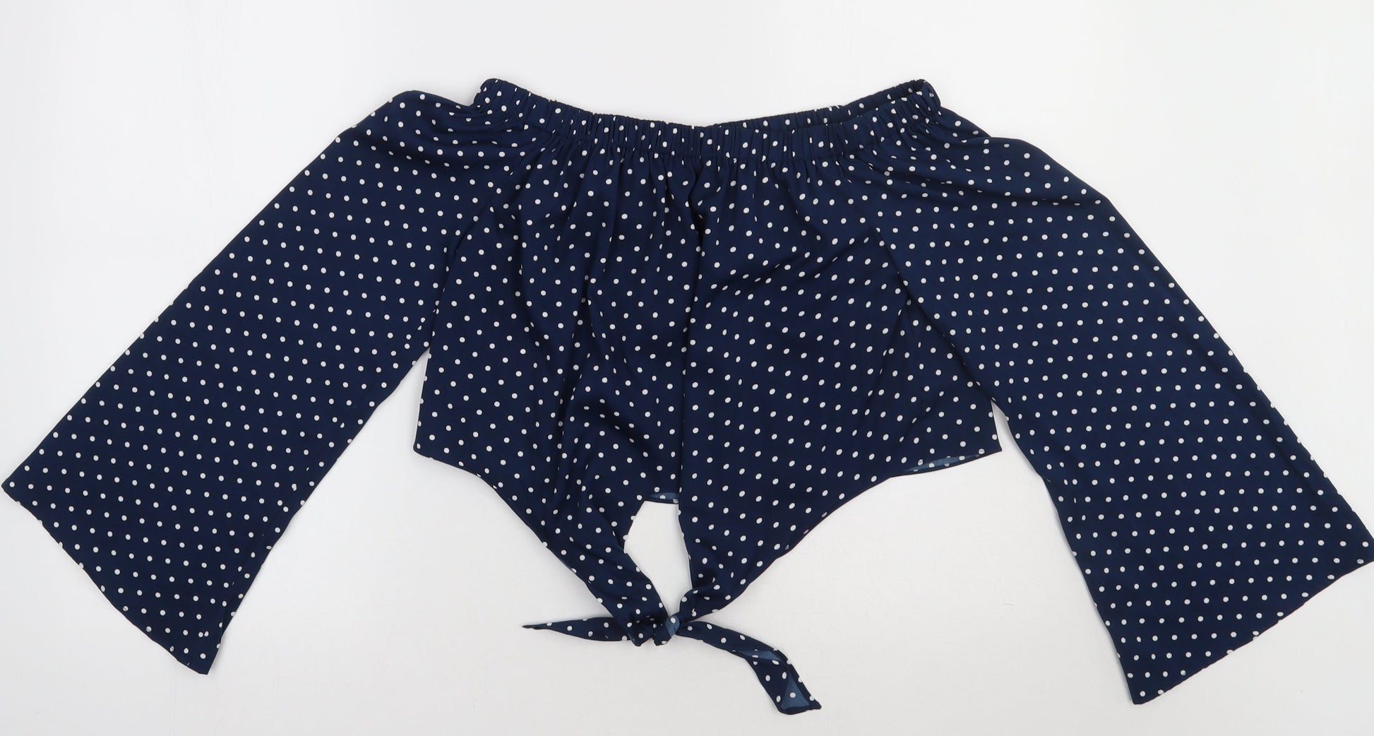 QED London Womens Blue Polka Dot Polyester Cropped Blouse Size 10 Off the Shoulder
