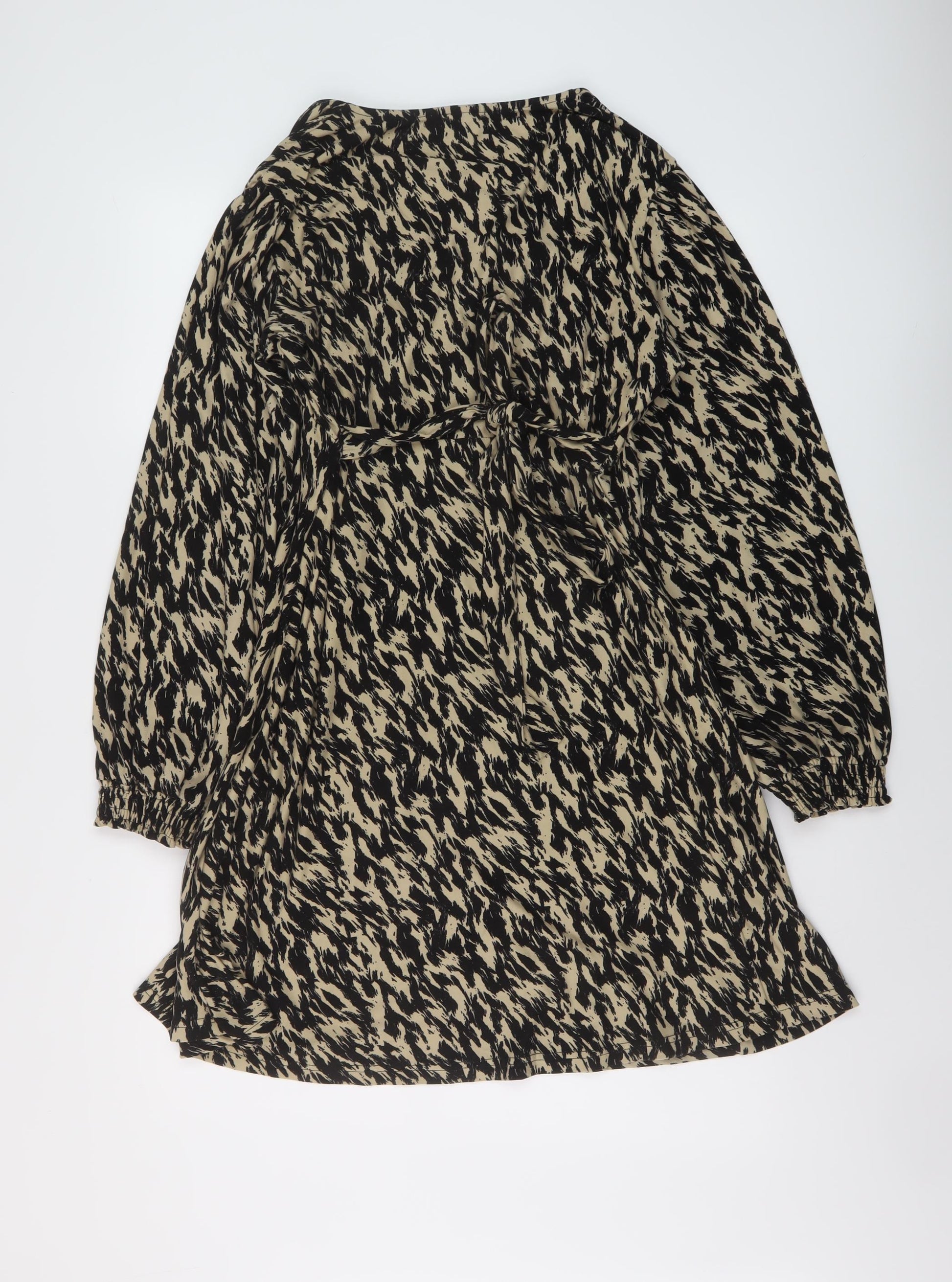 QED London Womens Brown Animal Print Polyester A-Line Size 12 V-Neck Pullover