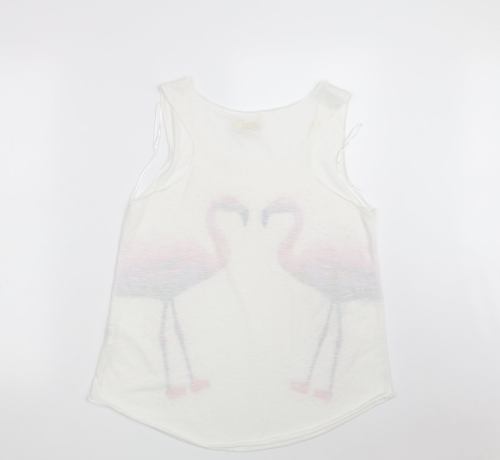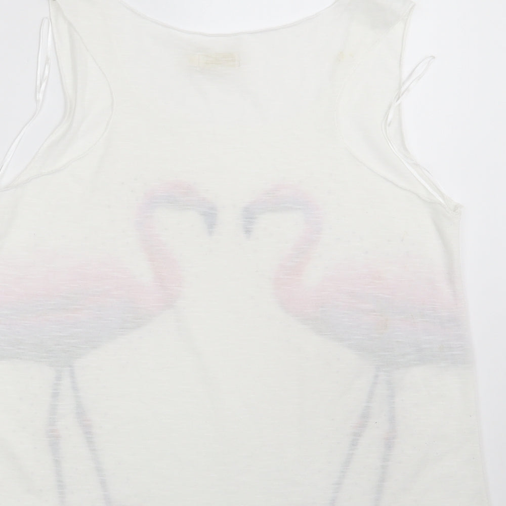 QED London Womens White Animal Print Polyester Basic Blouse Size M Round Neck - Flamingo