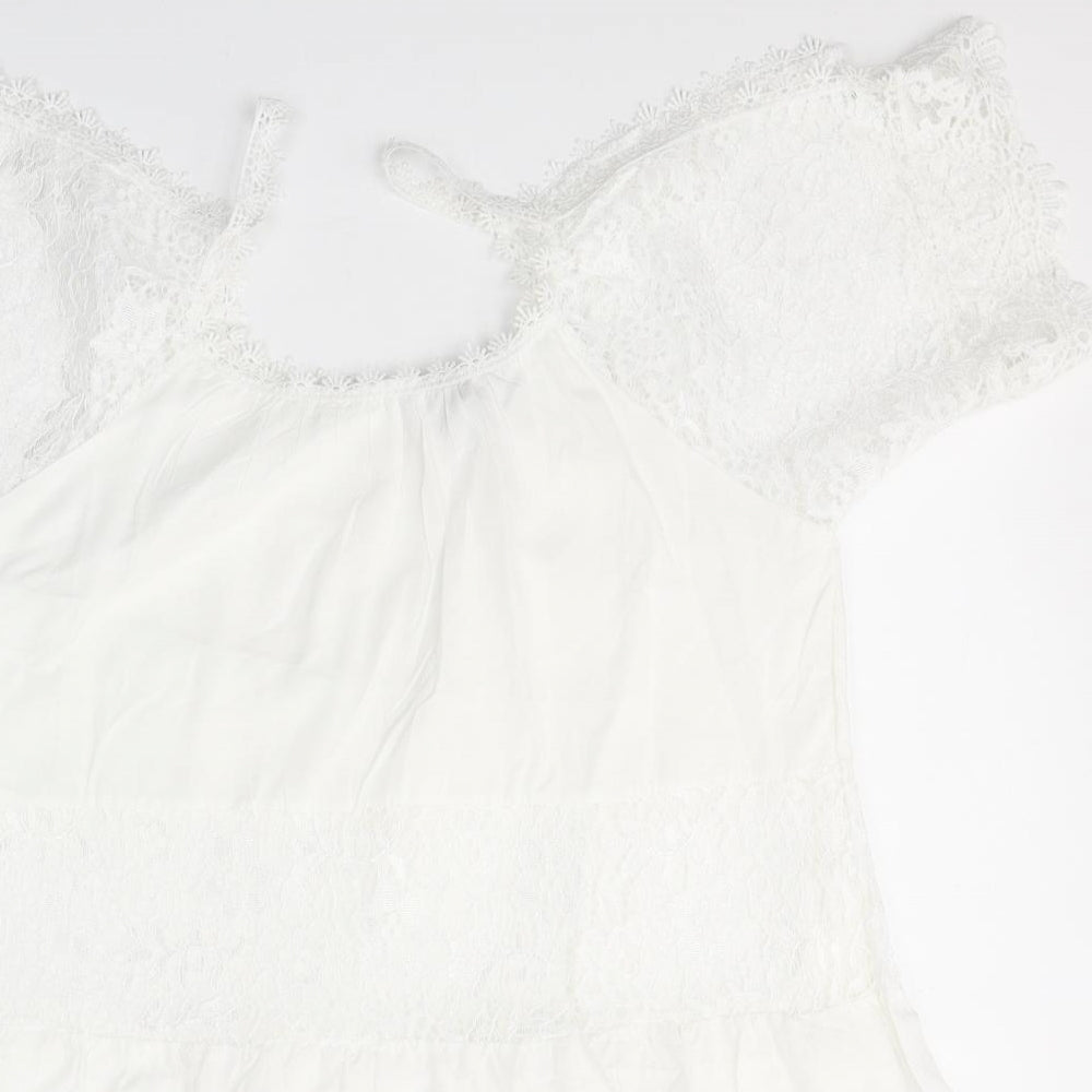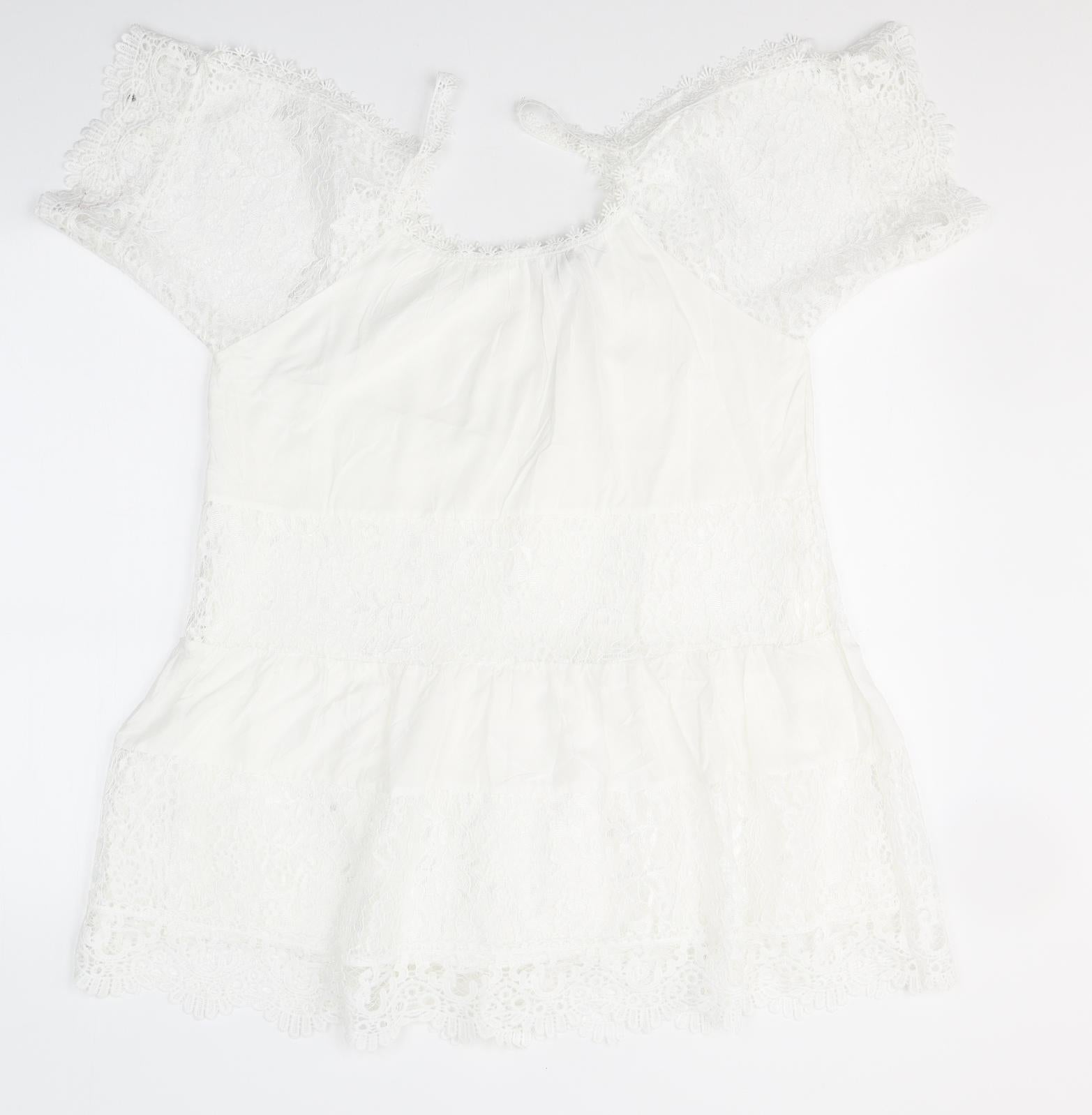 QED London Womens White Cotton Basic Blouse Size S Round Neck - Open Shoulder