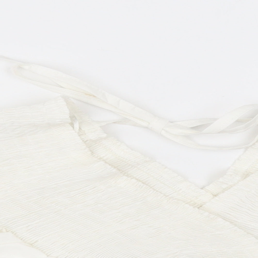 QED London Womens White Cotton Cropped Blouse Size S V-Neck