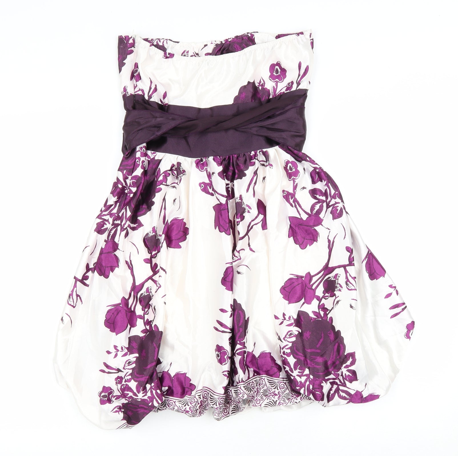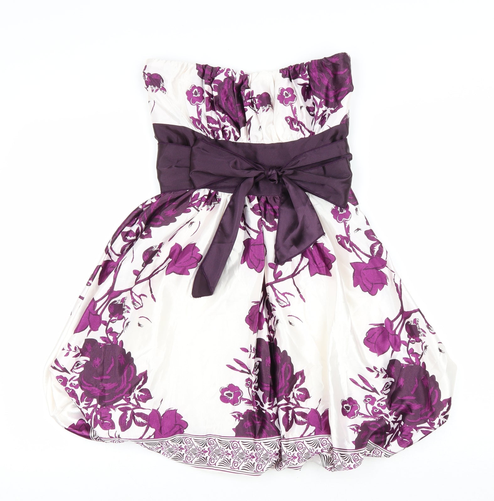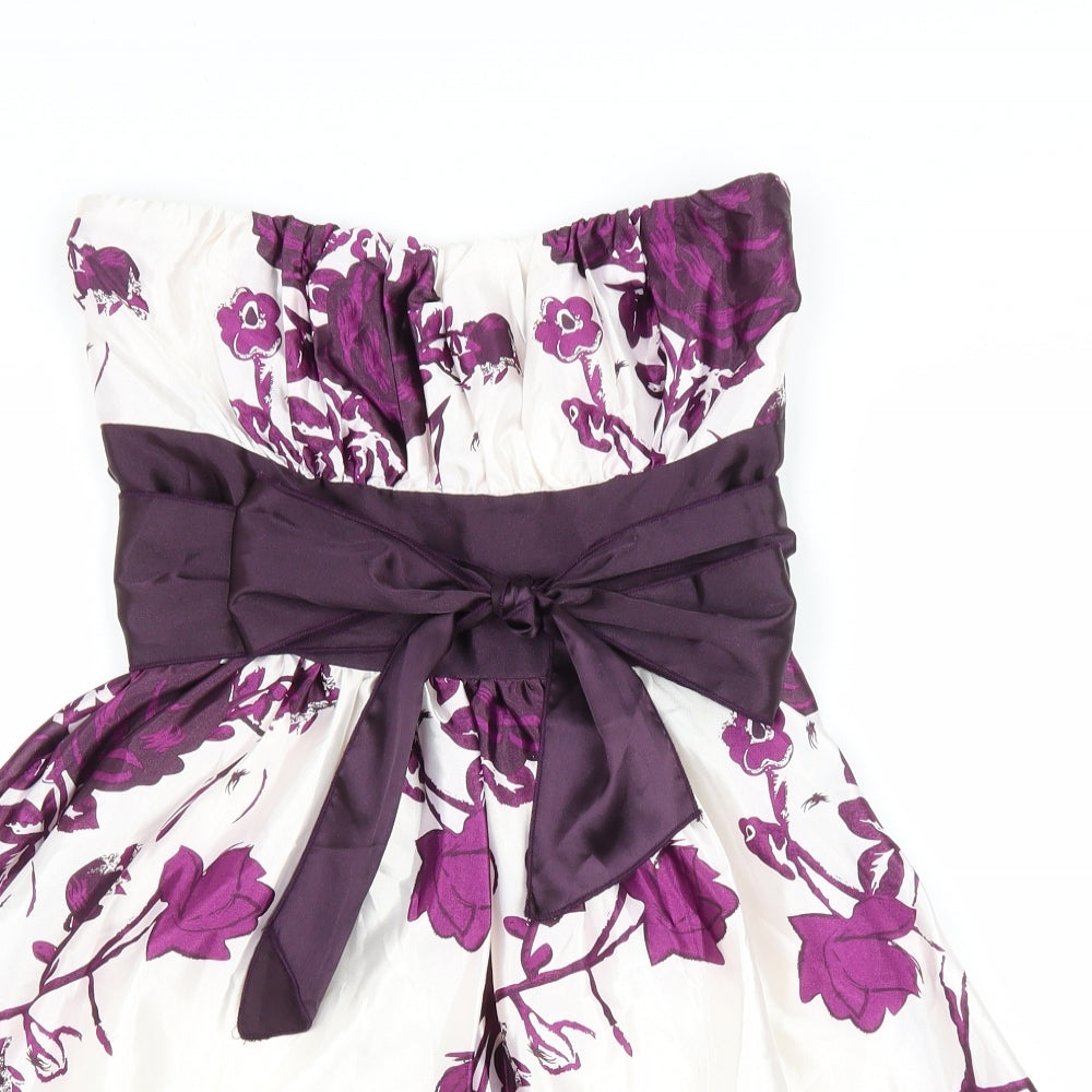 QED London Womens White Floral Polyester Fit & Flare Size XS Off the Shoulder Zip