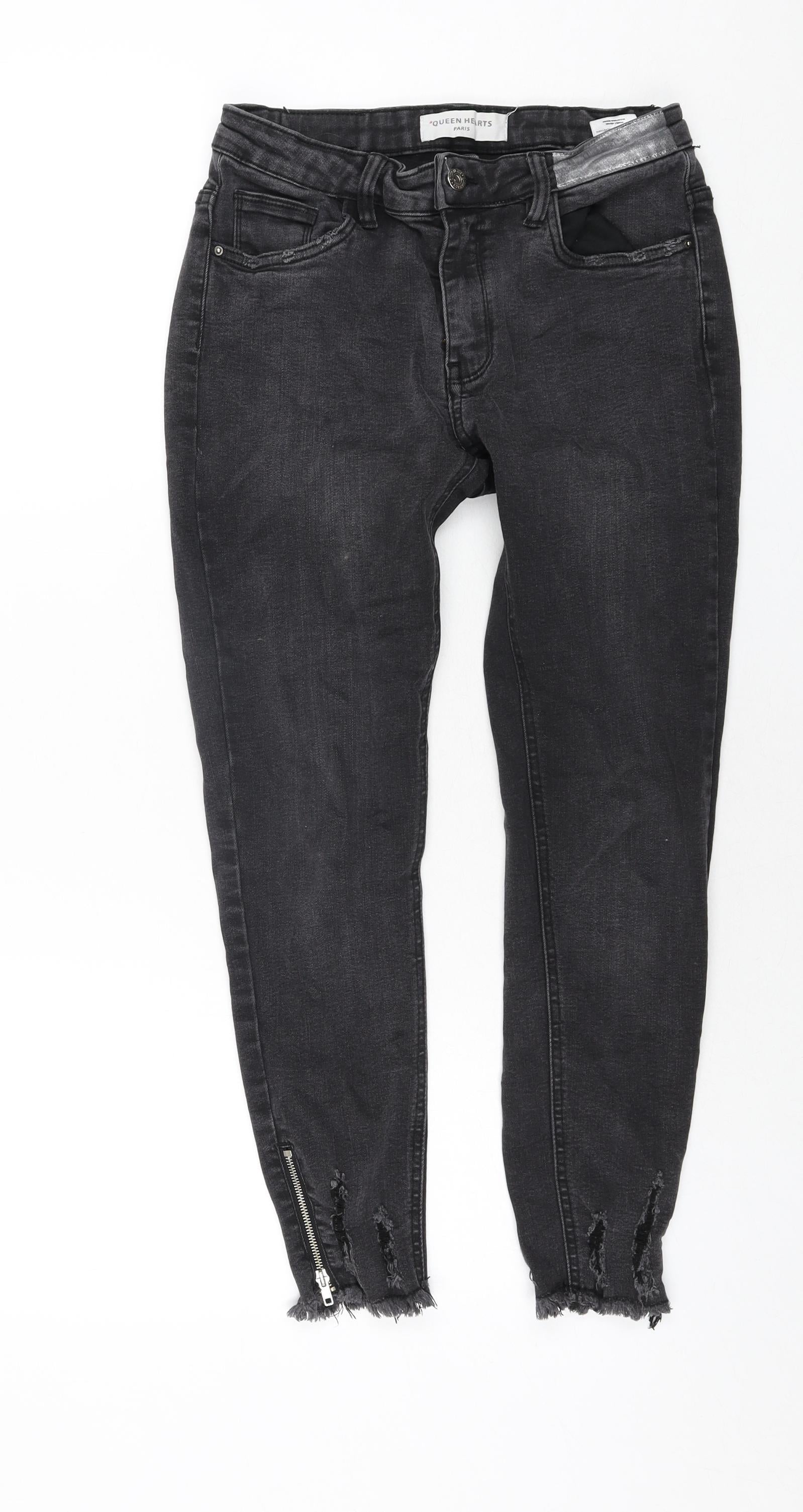 Queen Hearts Womens Grey Cotton Skinny Jeans Size L L26 in Regular Zip