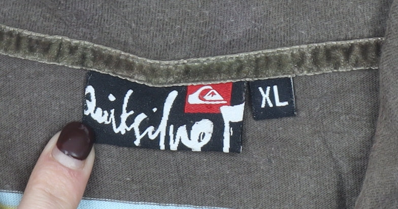 Quiksilver Men's Brown Striped Long Sleeve Cotton Polo Shirt XL