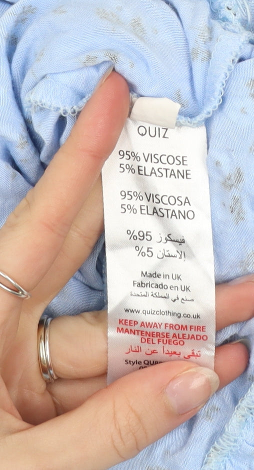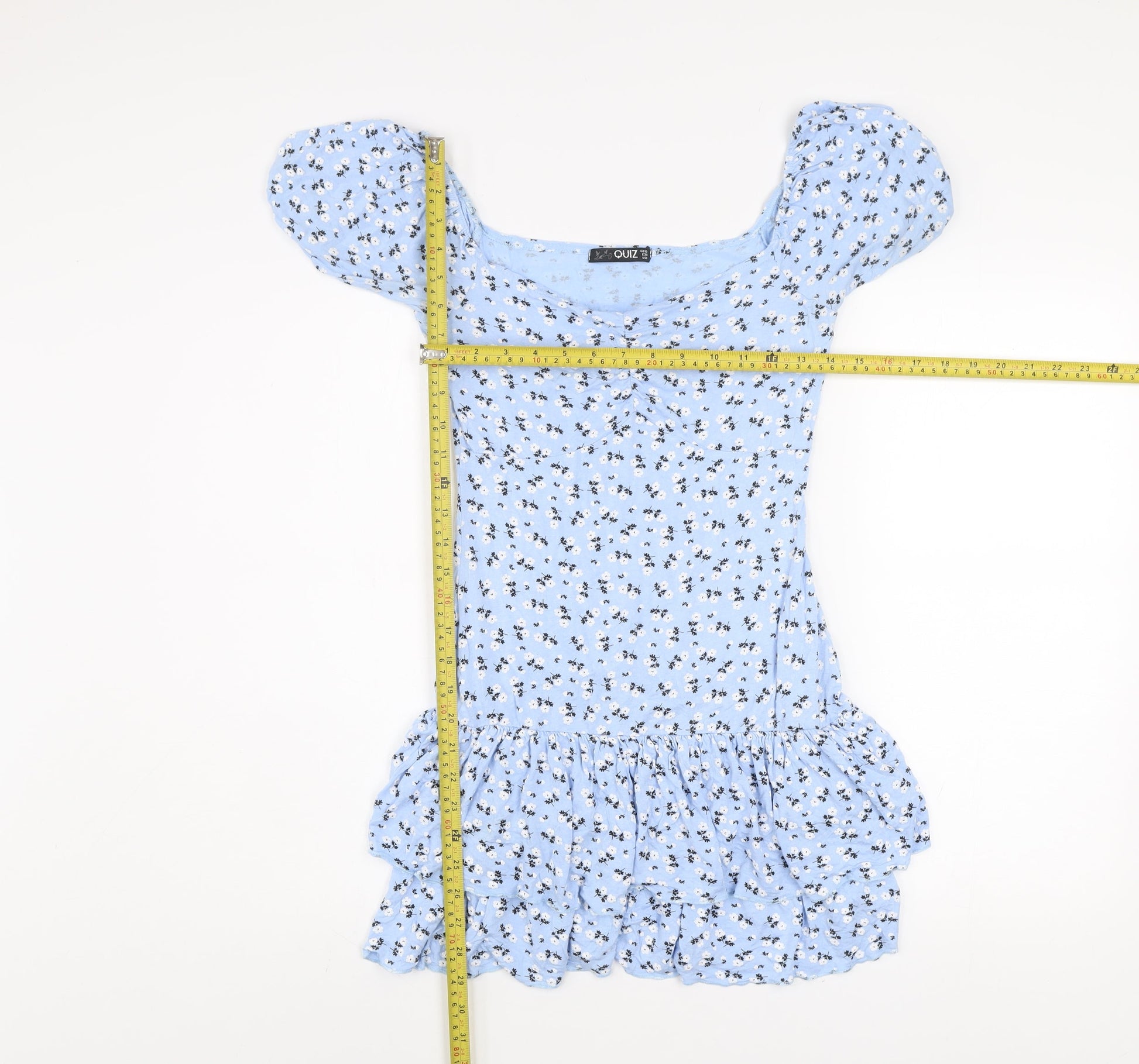 Quiz Women Blue Floral Mini Dress Size 10 Puff Sleeve Ruffle Hem