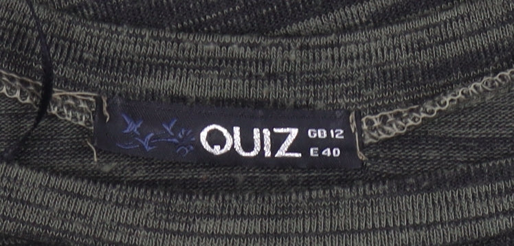 Quiz Women Green Striped Tunic T-Shirt Size 12 Short Sleeve