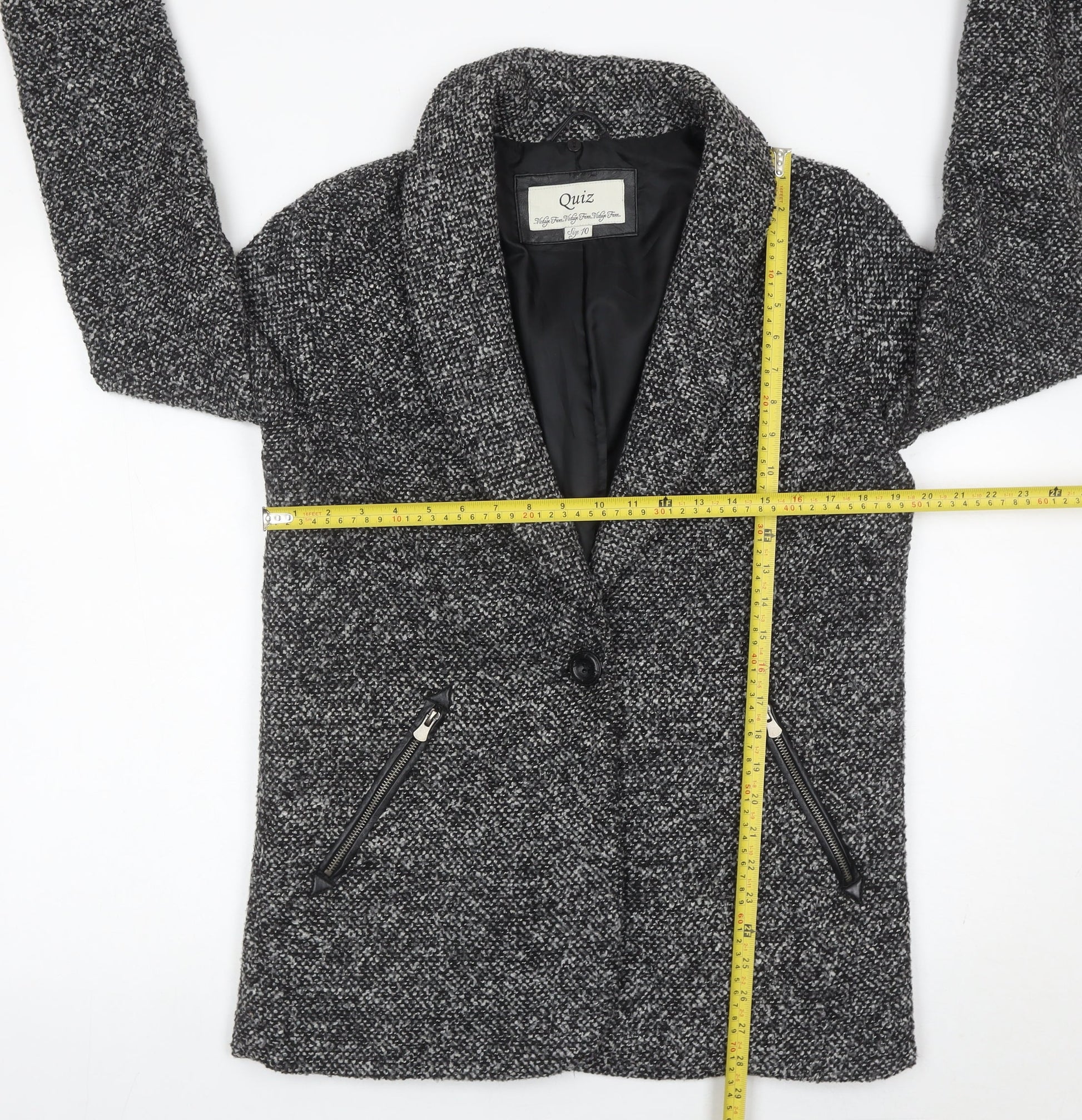 Quiz Women Grey Tweed Shawl Collar Blazer Jacket Size 10