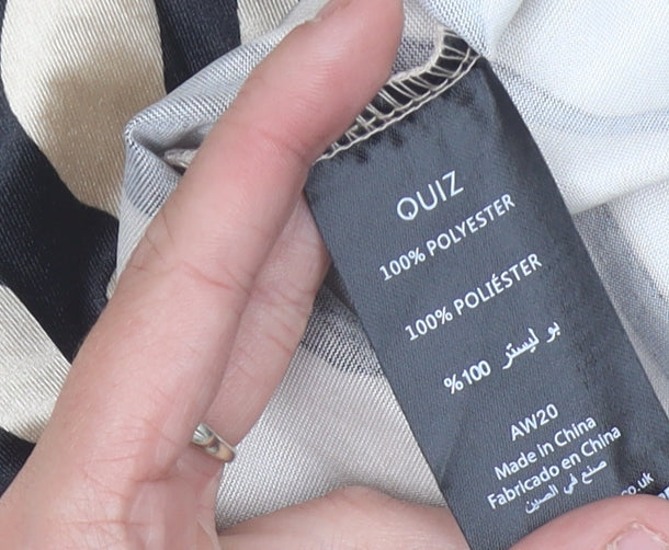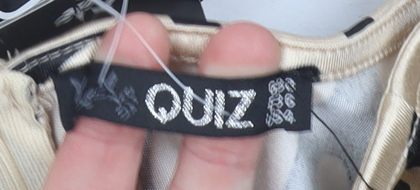 Quiz Women’s Beige Animal Print Bodycon Dress Size 12 Puff Sleeve
