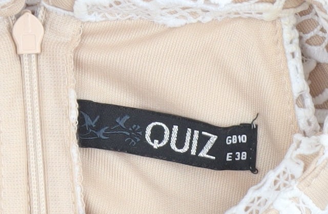 Quiz Women’s Beige & White Lace Hi-Low Halter Midi Dress UK 10