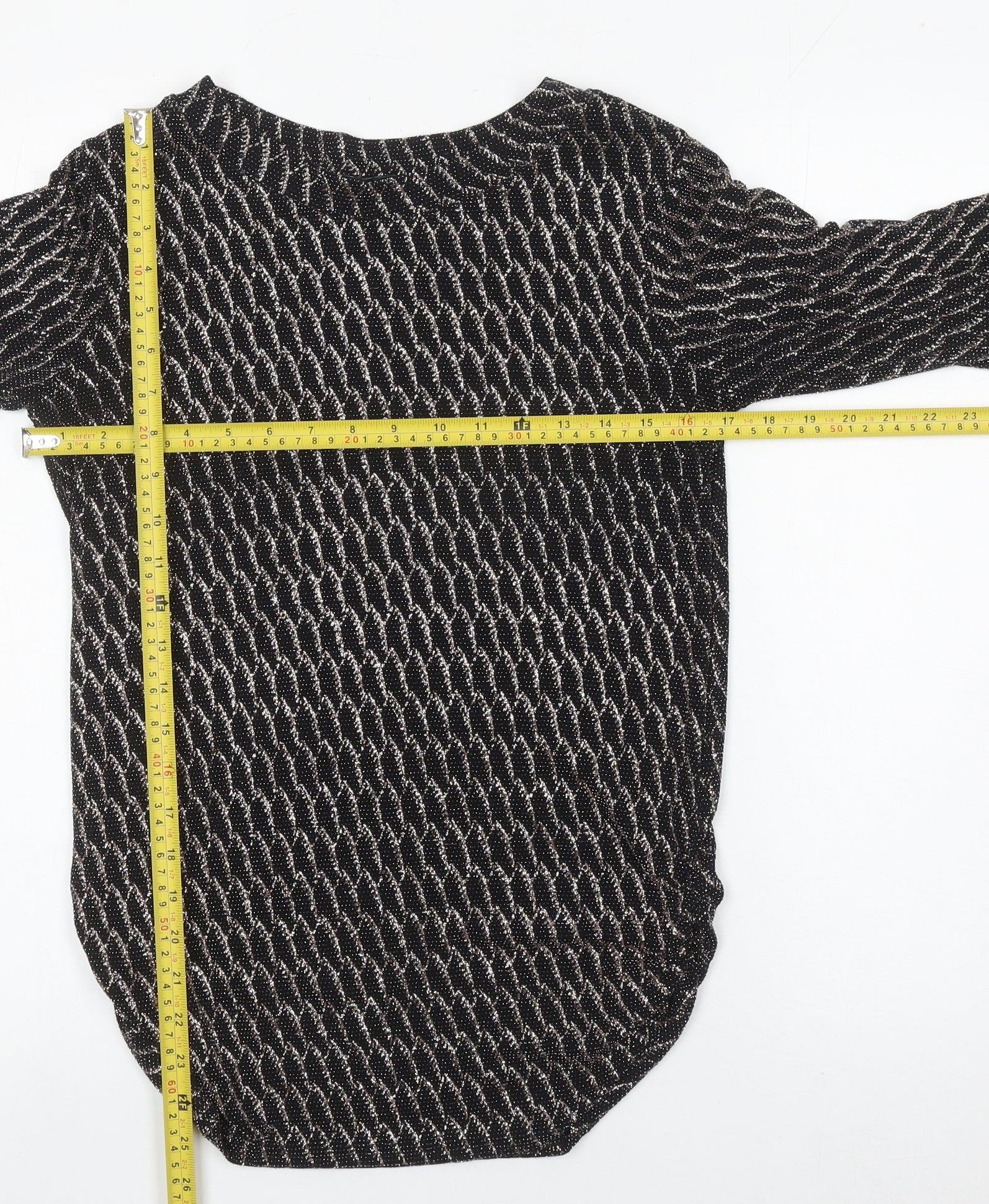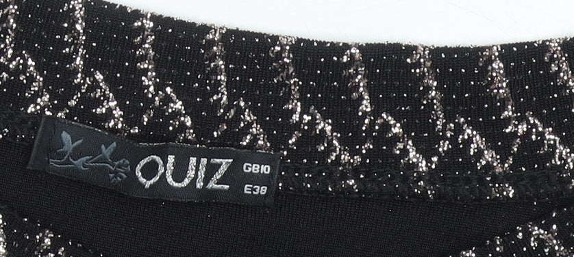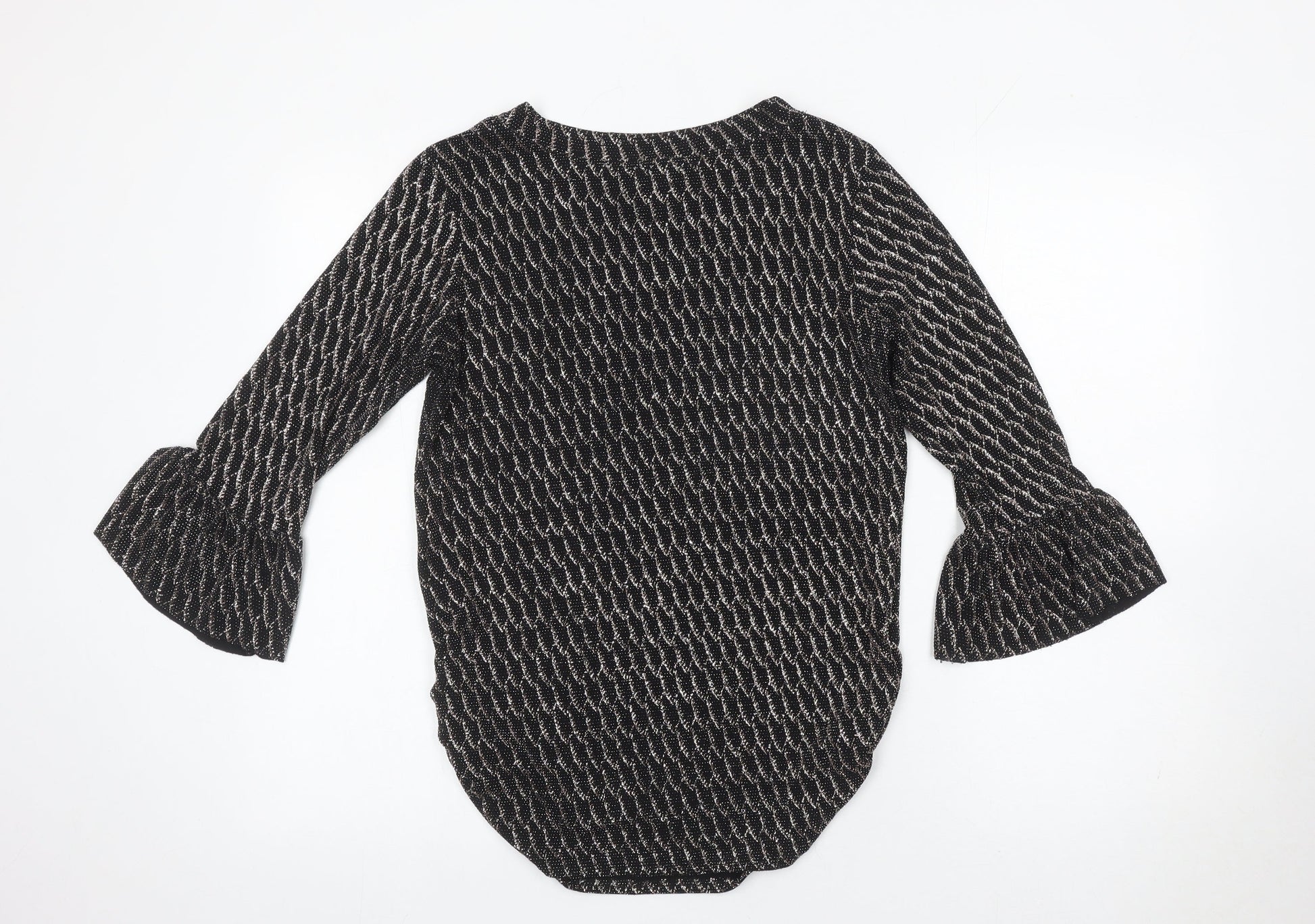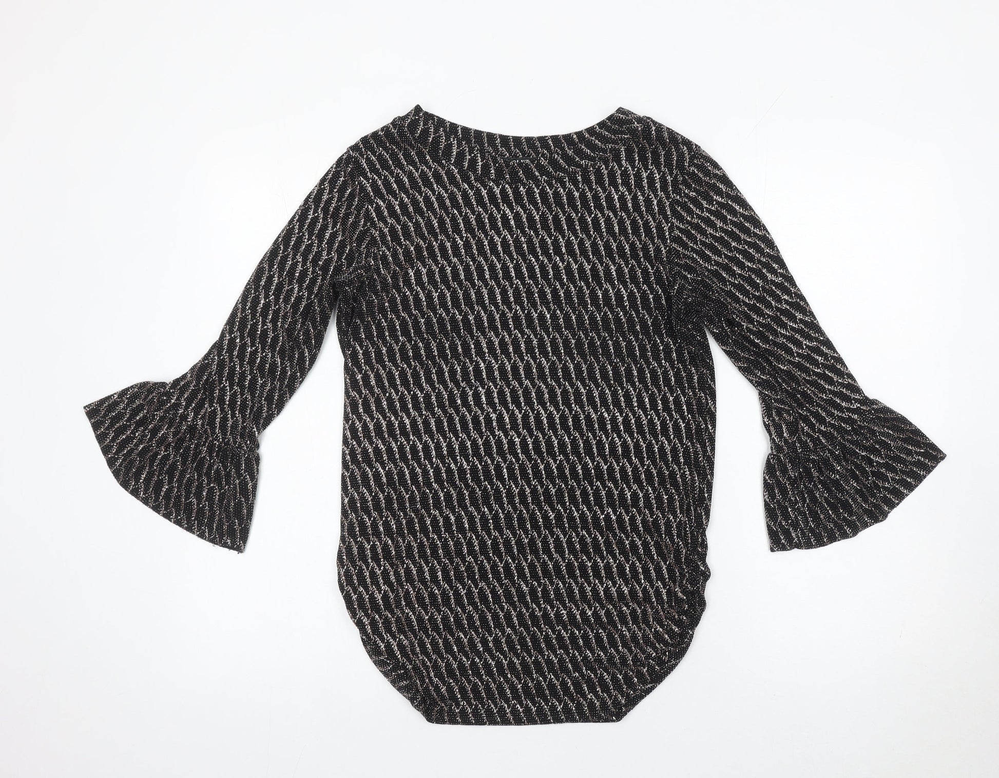 Quiz Women’s Black Metallic Bell Sleeve Tunic Blouse Size 10