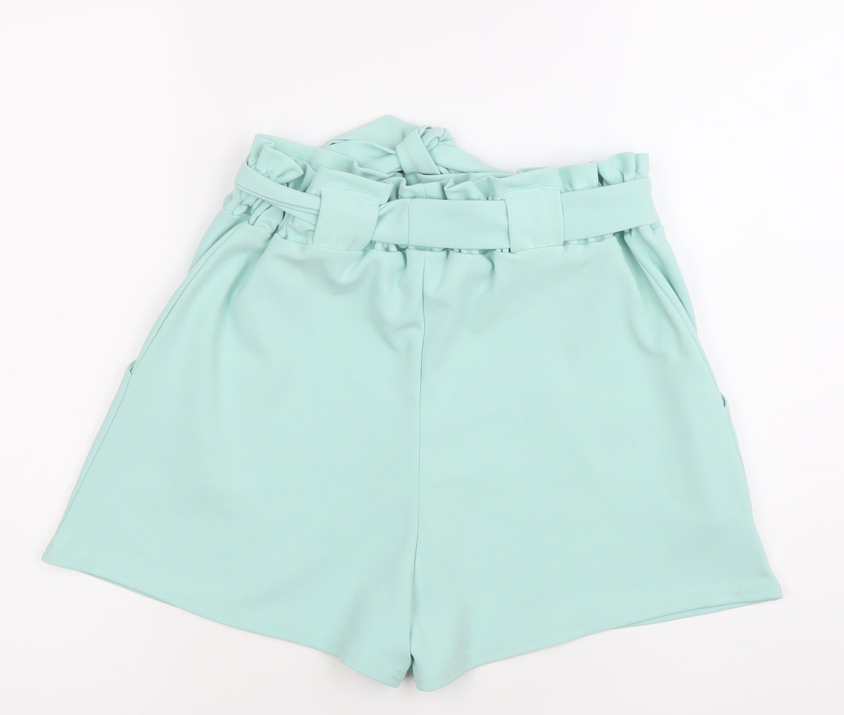 Quiz Women’s Green Paperbag Shorts Size 12 High Waist Belted