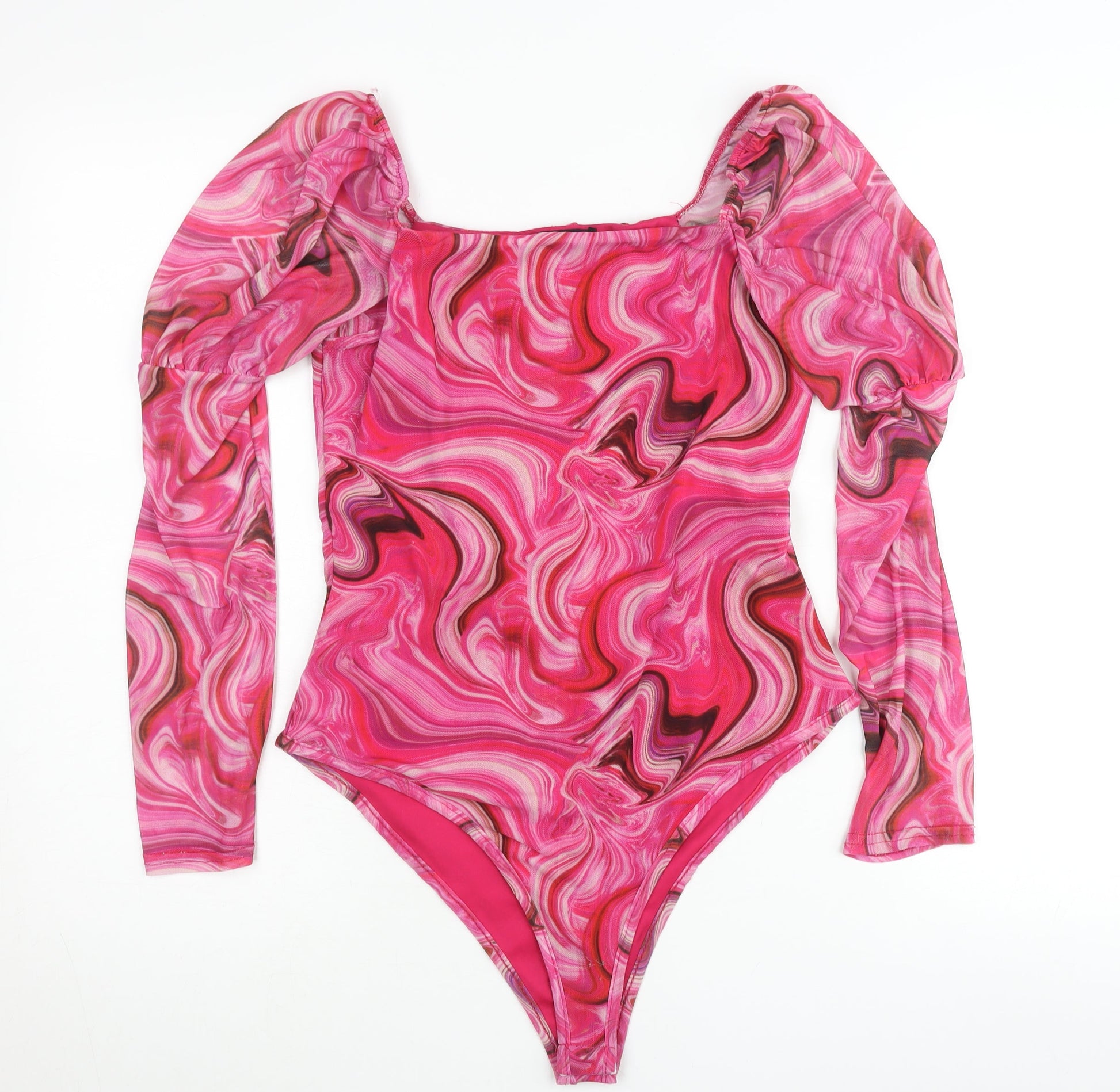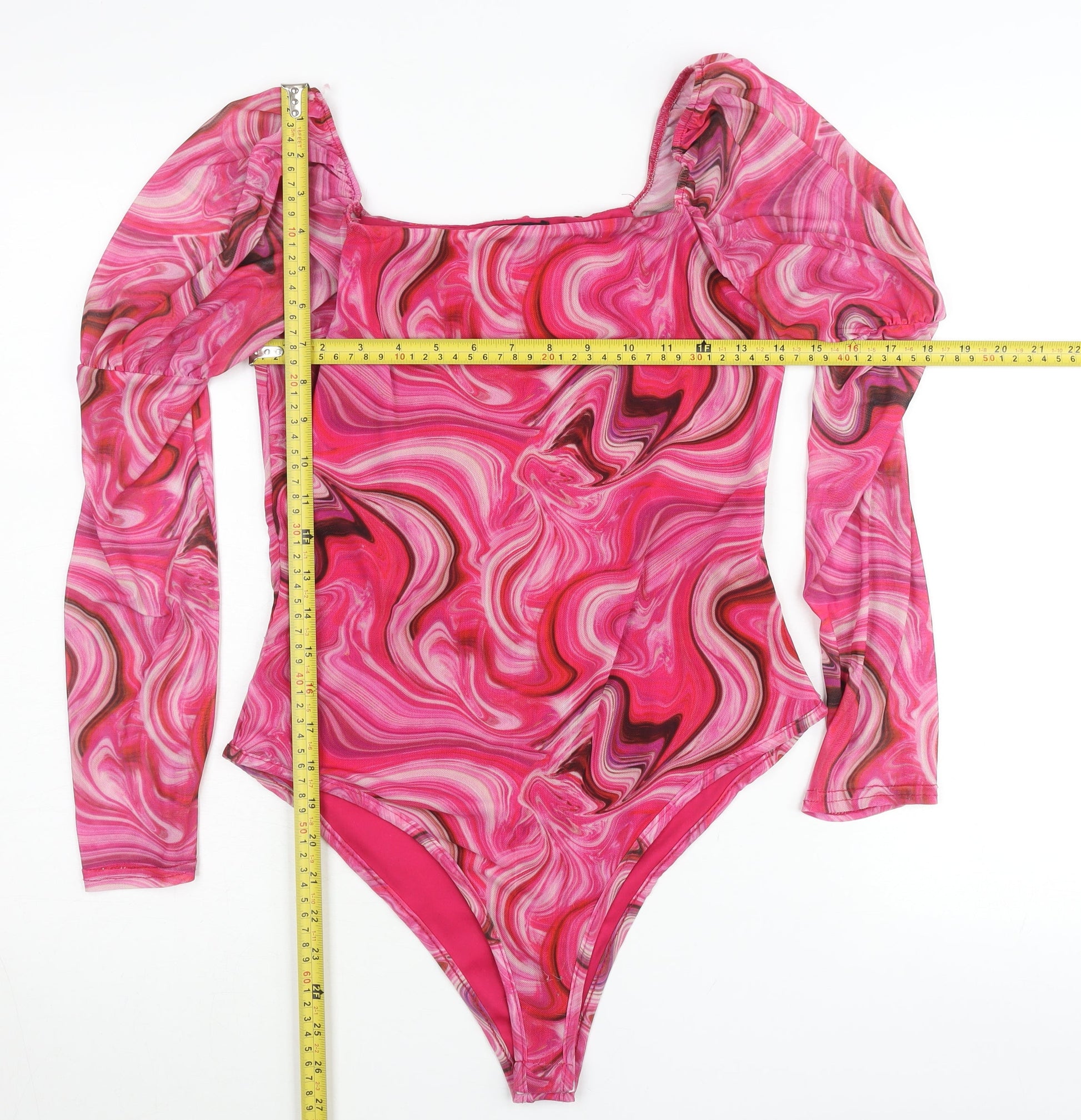 Quiz Women’s Multicoloured Bodysuit Size 10 Puff Sleeve Party Top