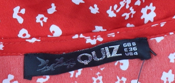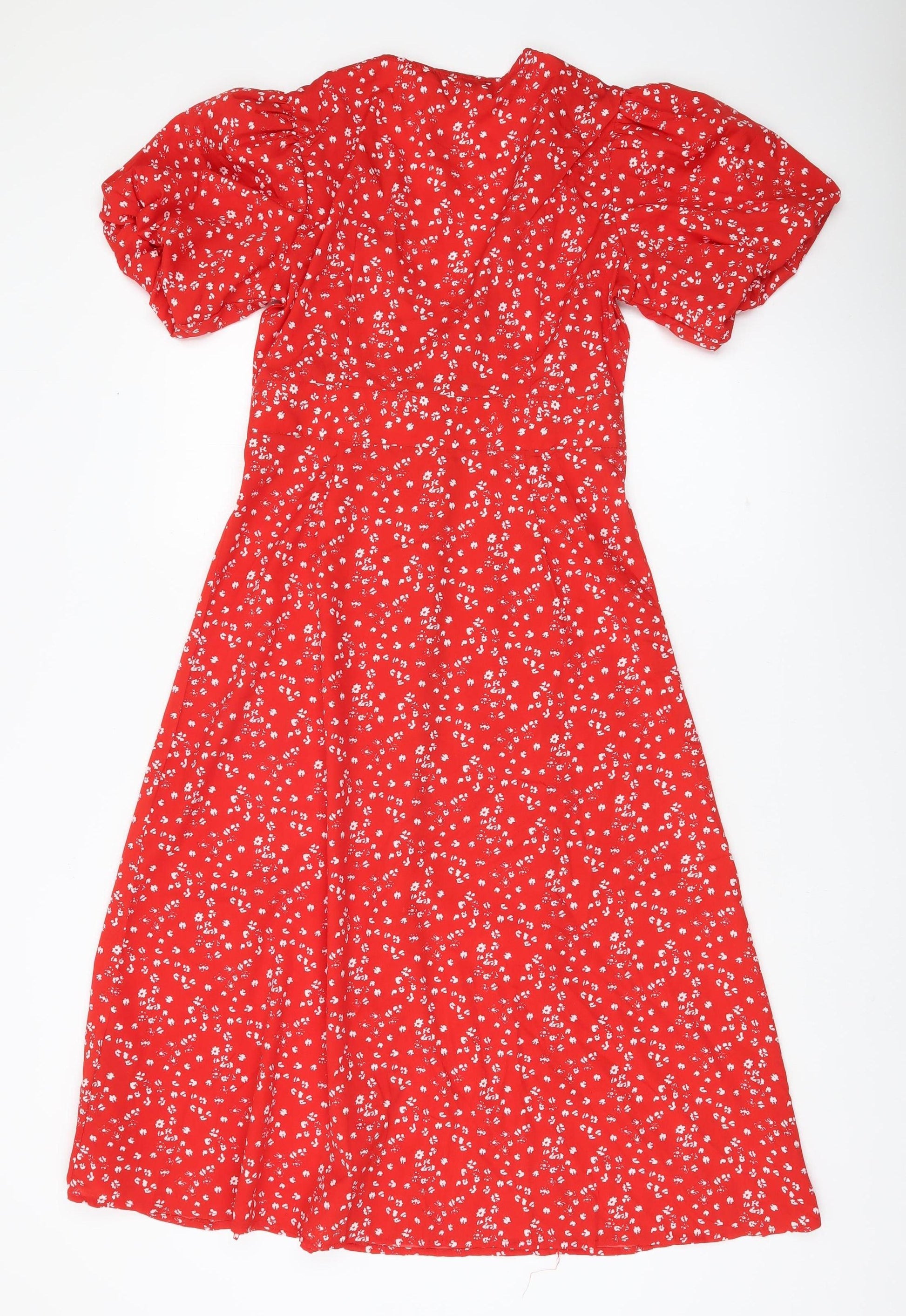 Quiz Women’s Red Floral A-Line Dress Size 8 Short Puff Sleeve