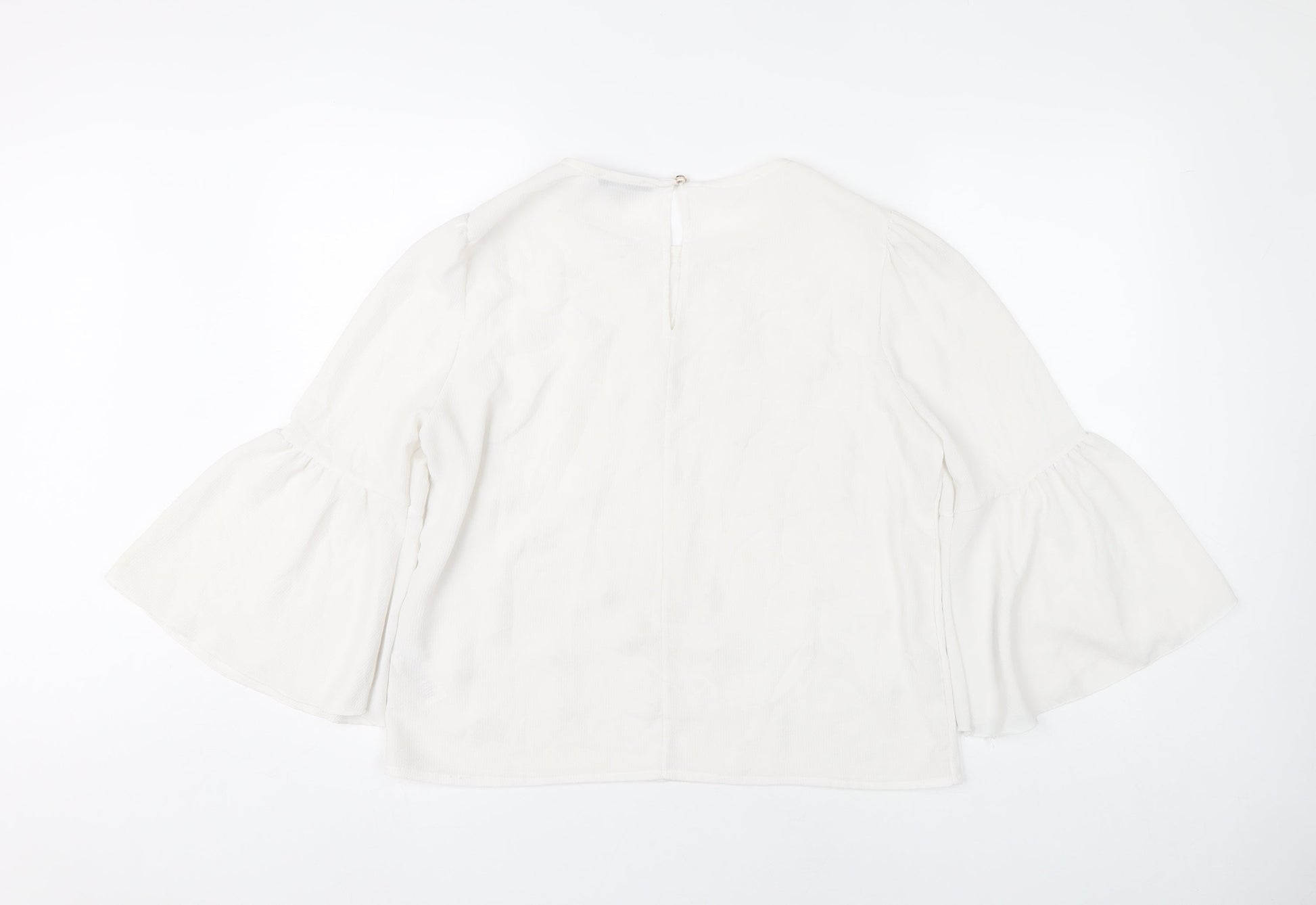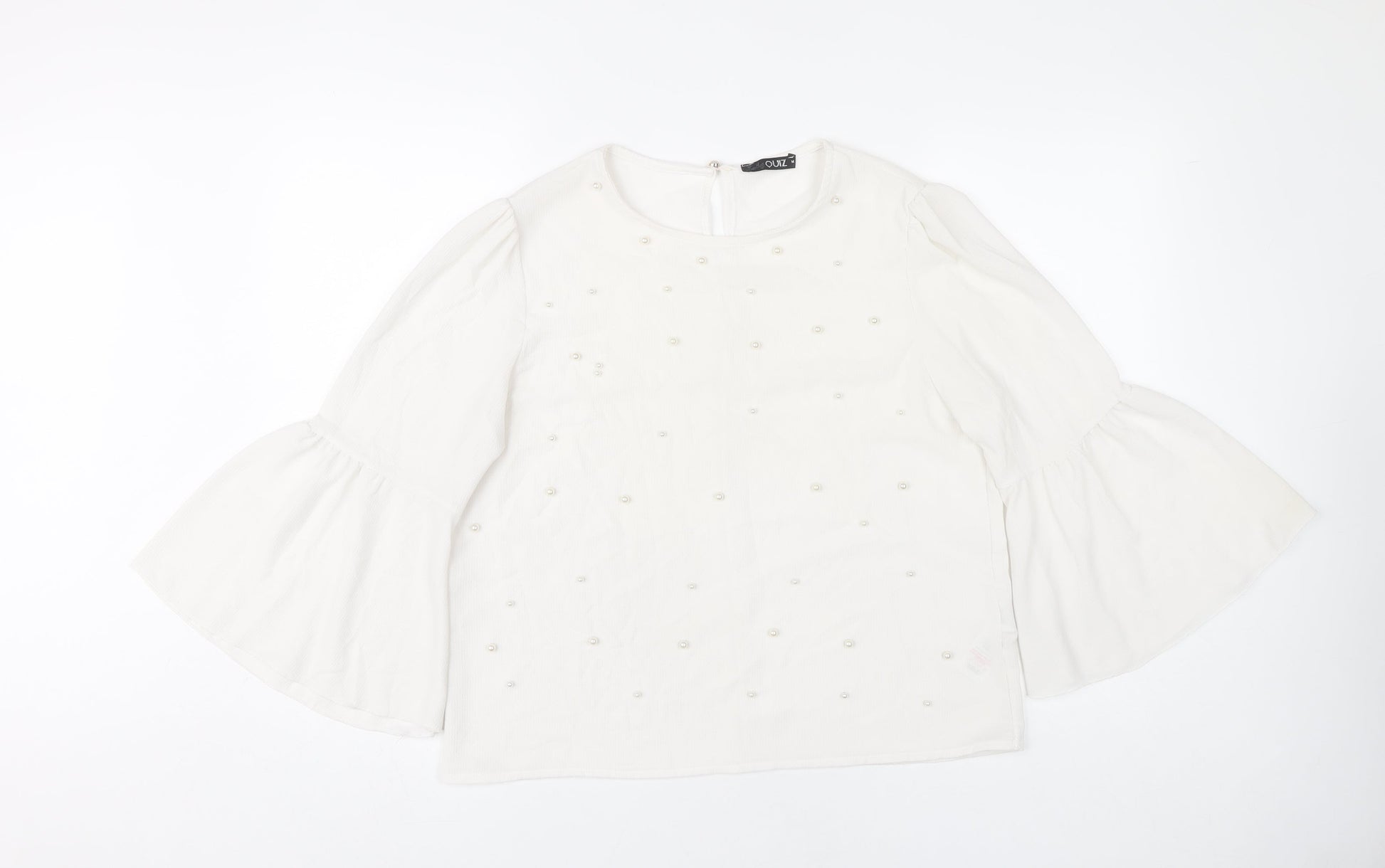 Quiz Women White Beaded Bell Sleeve Tunic Blouse Size M