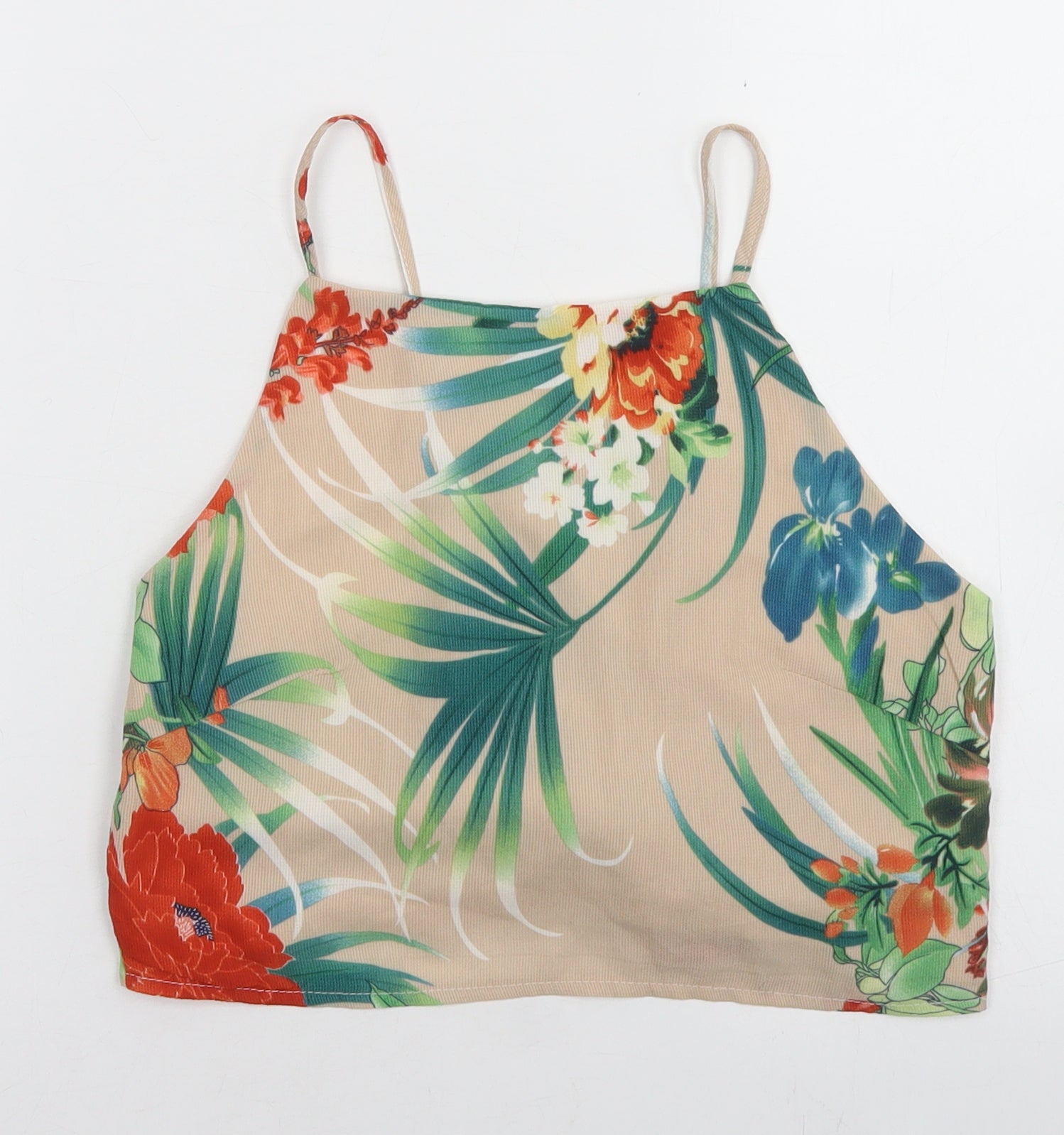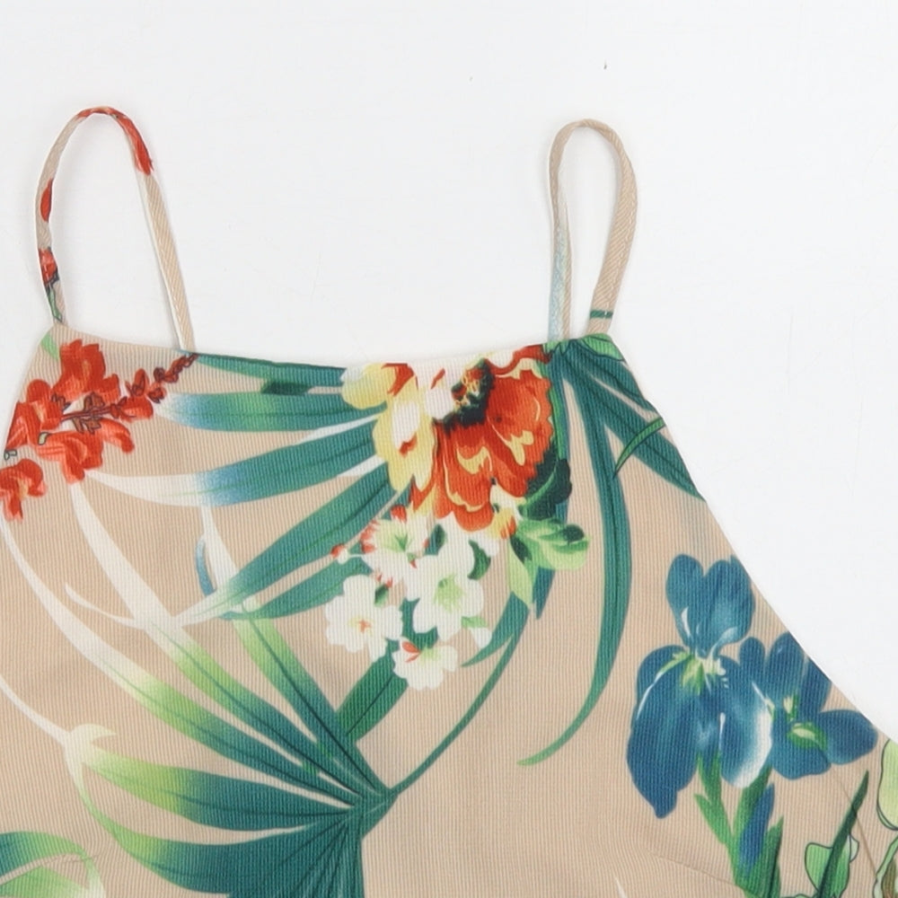 Quiz Womens Beige Floral Polyester Camisole Blouse Size 12 Square Neck - Cropped