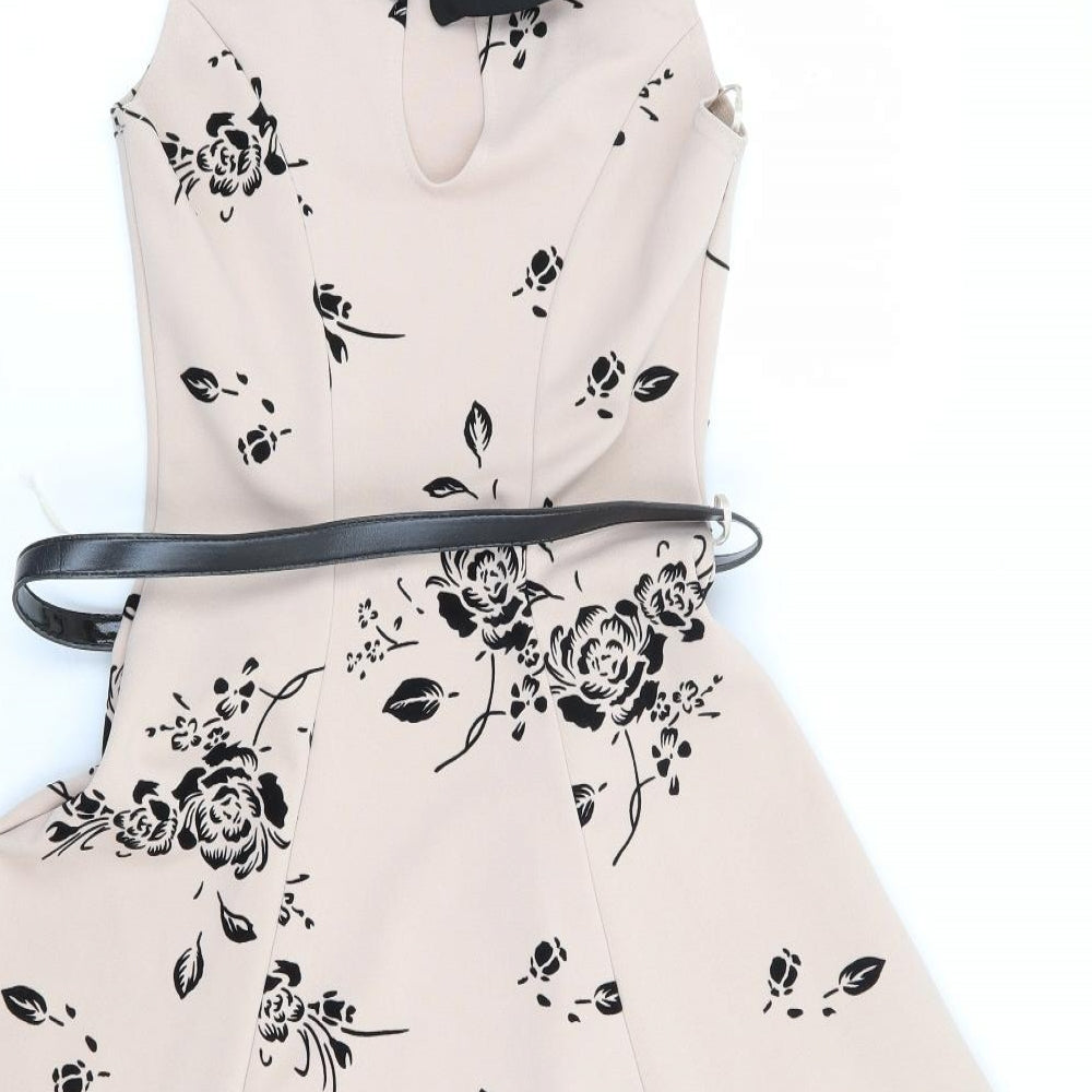 Quiz Womens Beige Floral Polyester Fit & Flare Size 8 Collared Pullover