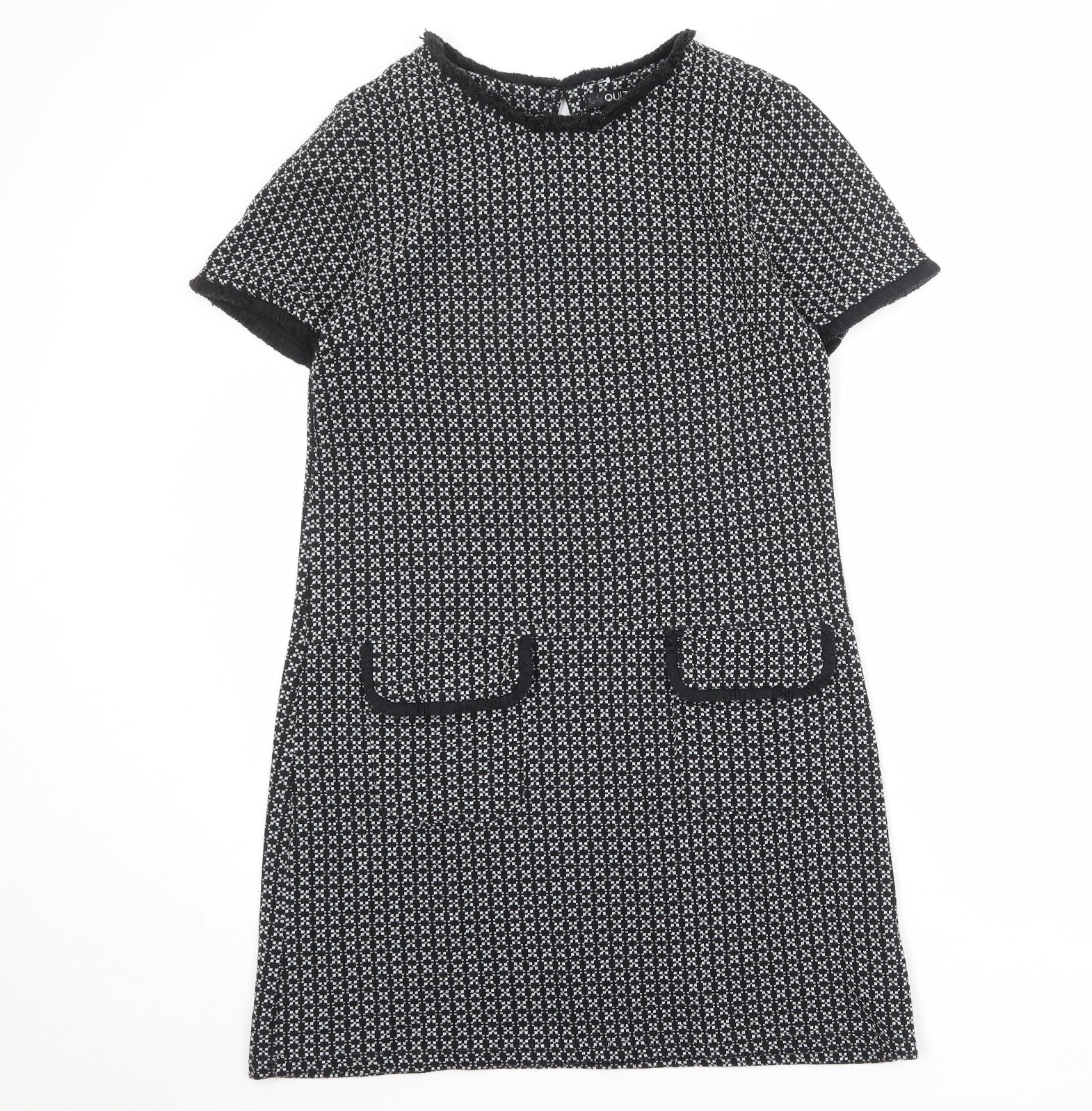 Quiz Womens Black Geometric Polyester A-Line Size 12 Round Neck Button