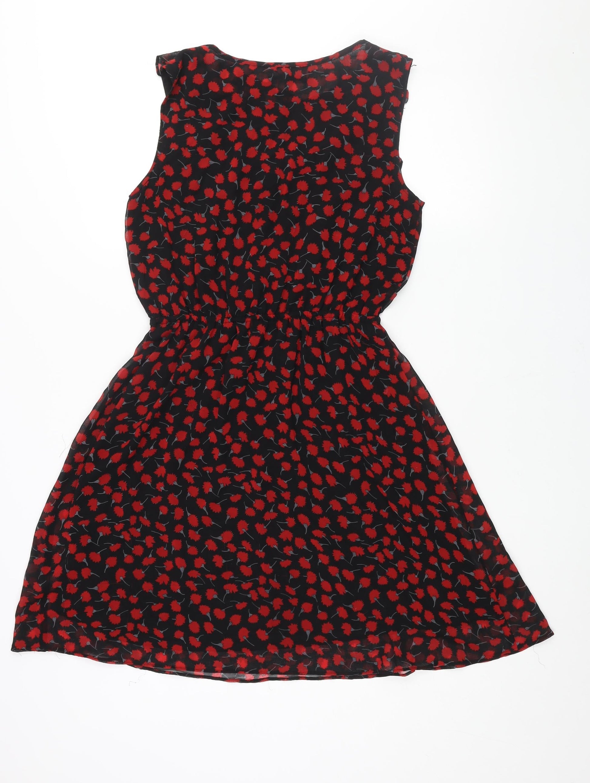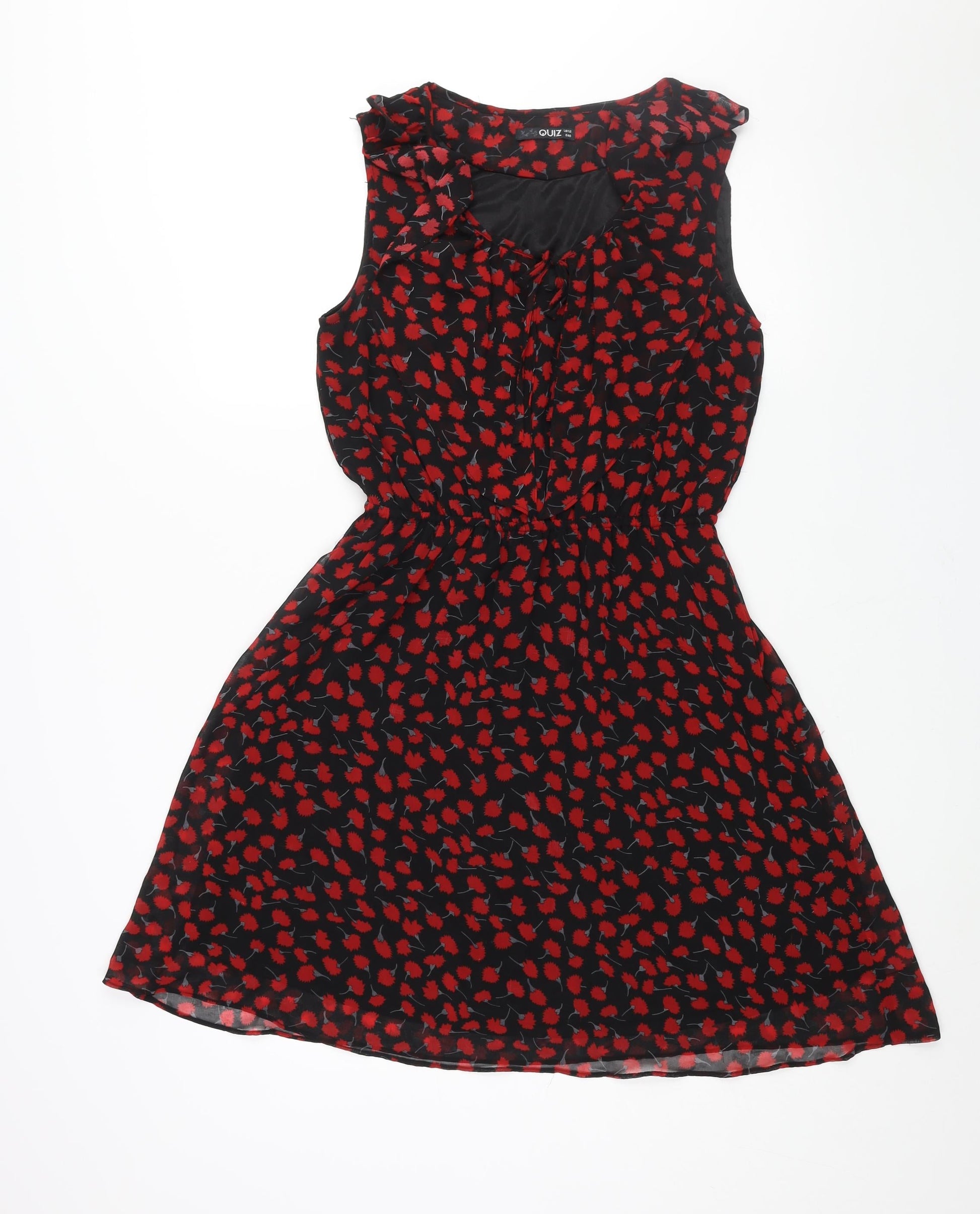 Quiz Womens Black Geometric Polyester A-Line Size 12 V-Neck Pullover - Frill Bow