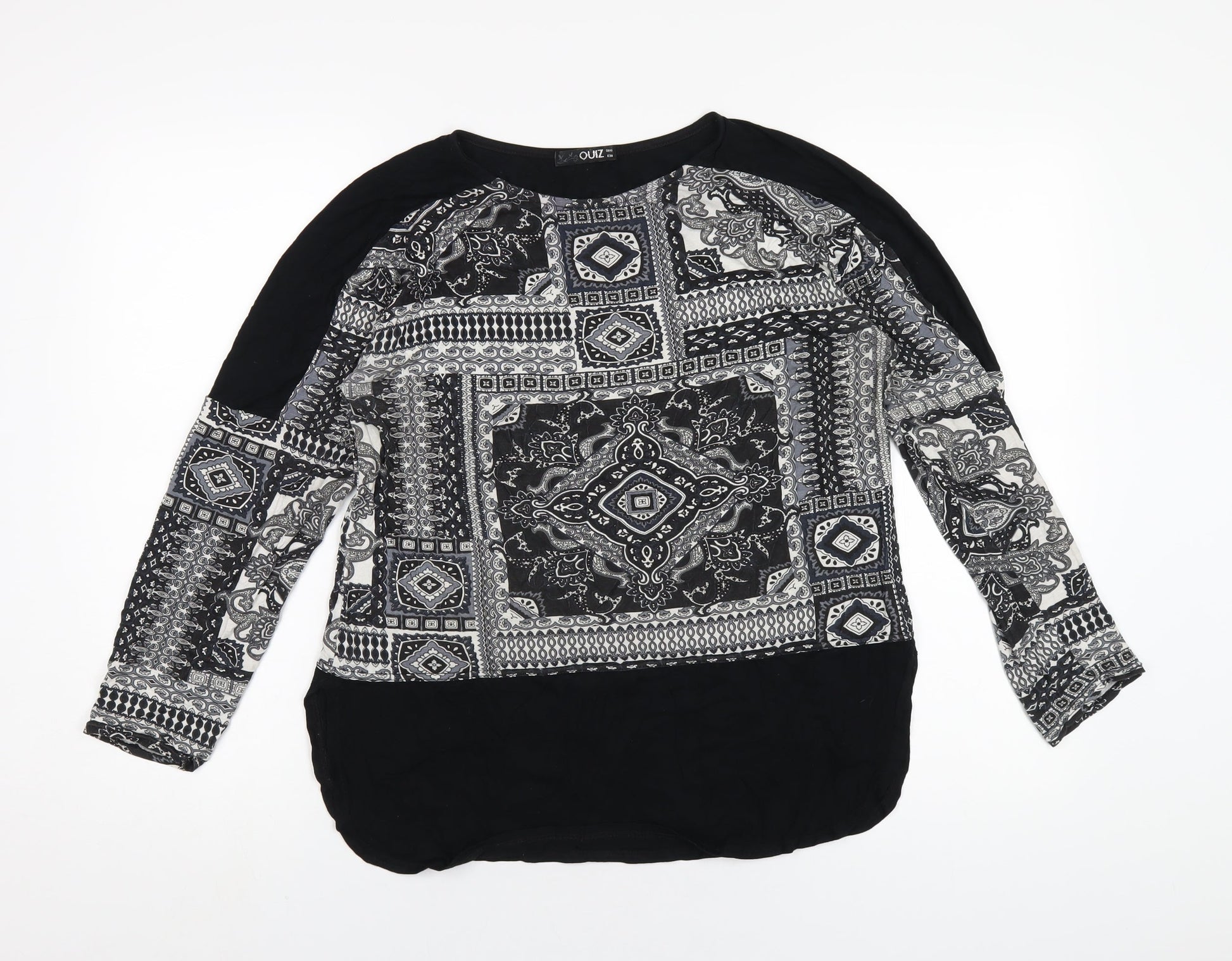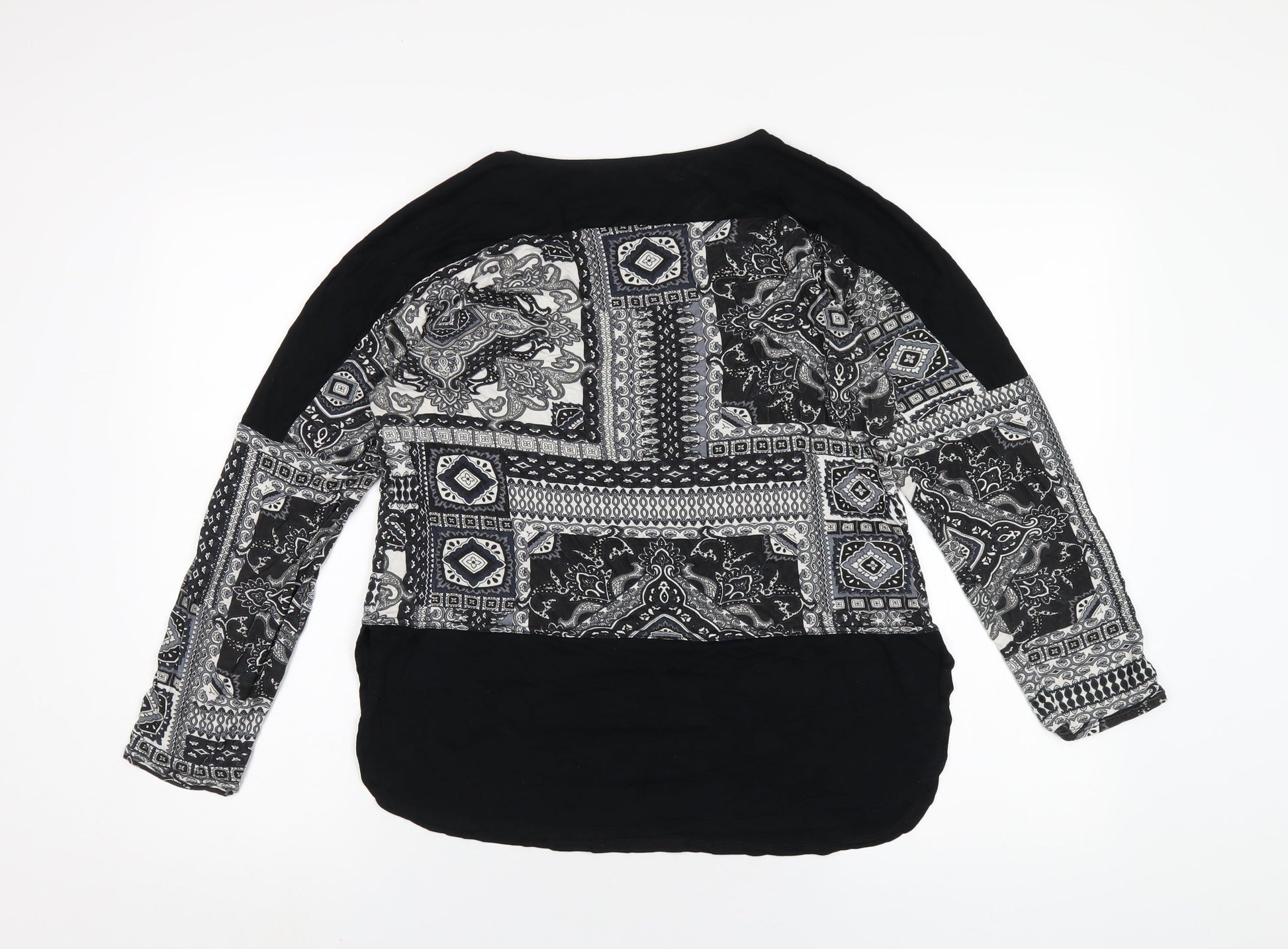 Quiz Womens Black Geometric Viscose Basic T-Shirt Size 10 Round Neck