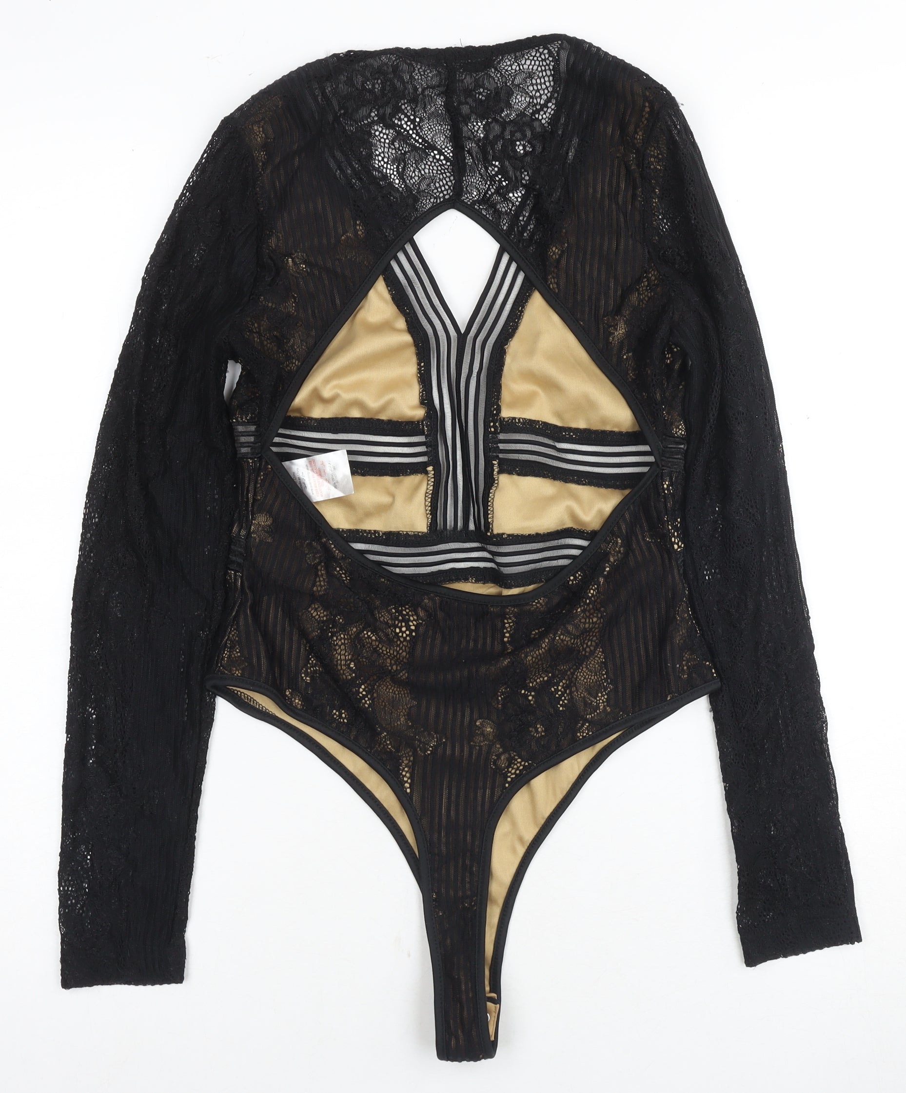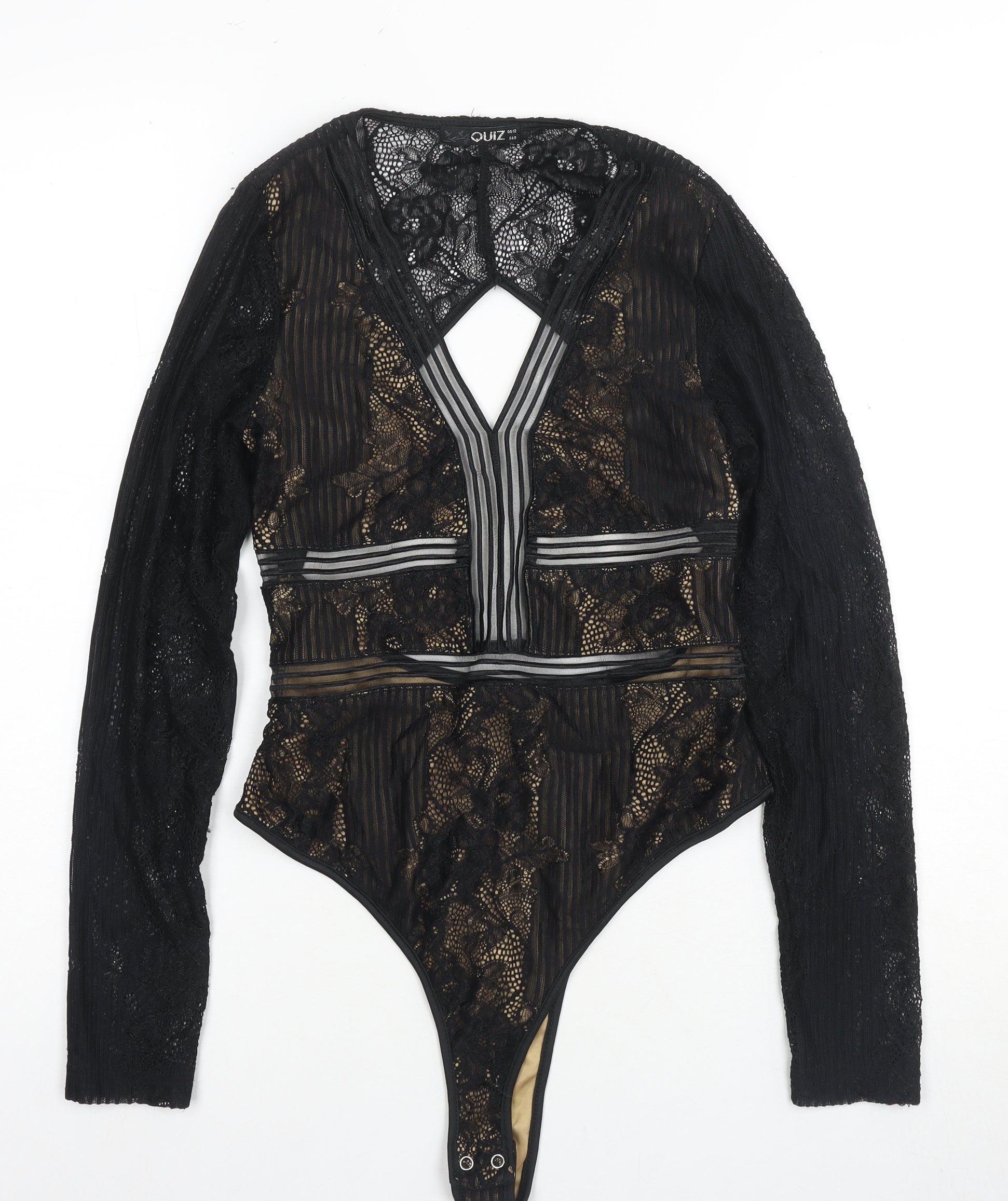 Quiz Women's Black Lace Bodysuit Size 12 Stretch, Open Back