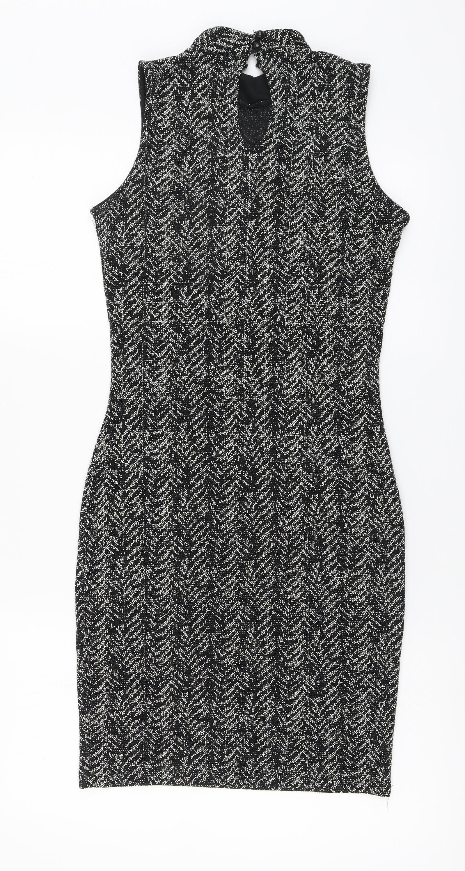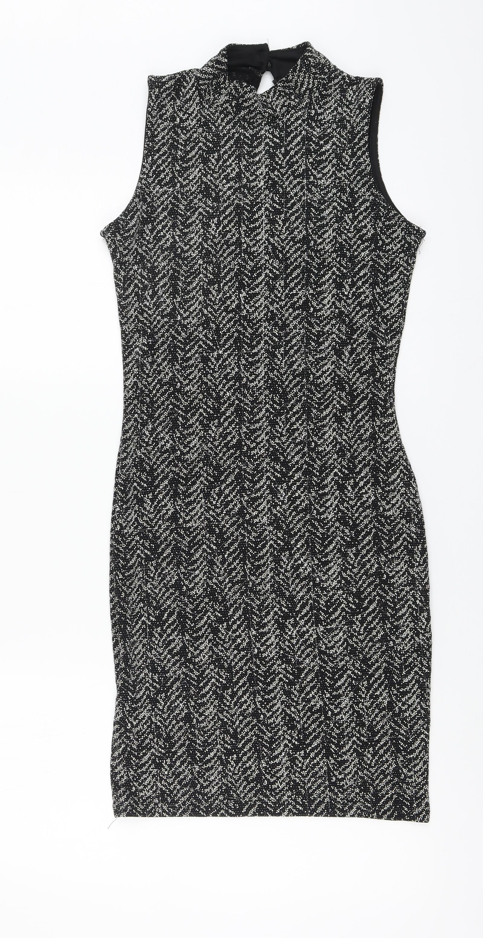 Quiz Womens Black Nylon A-Line Size 8 High Neck Button