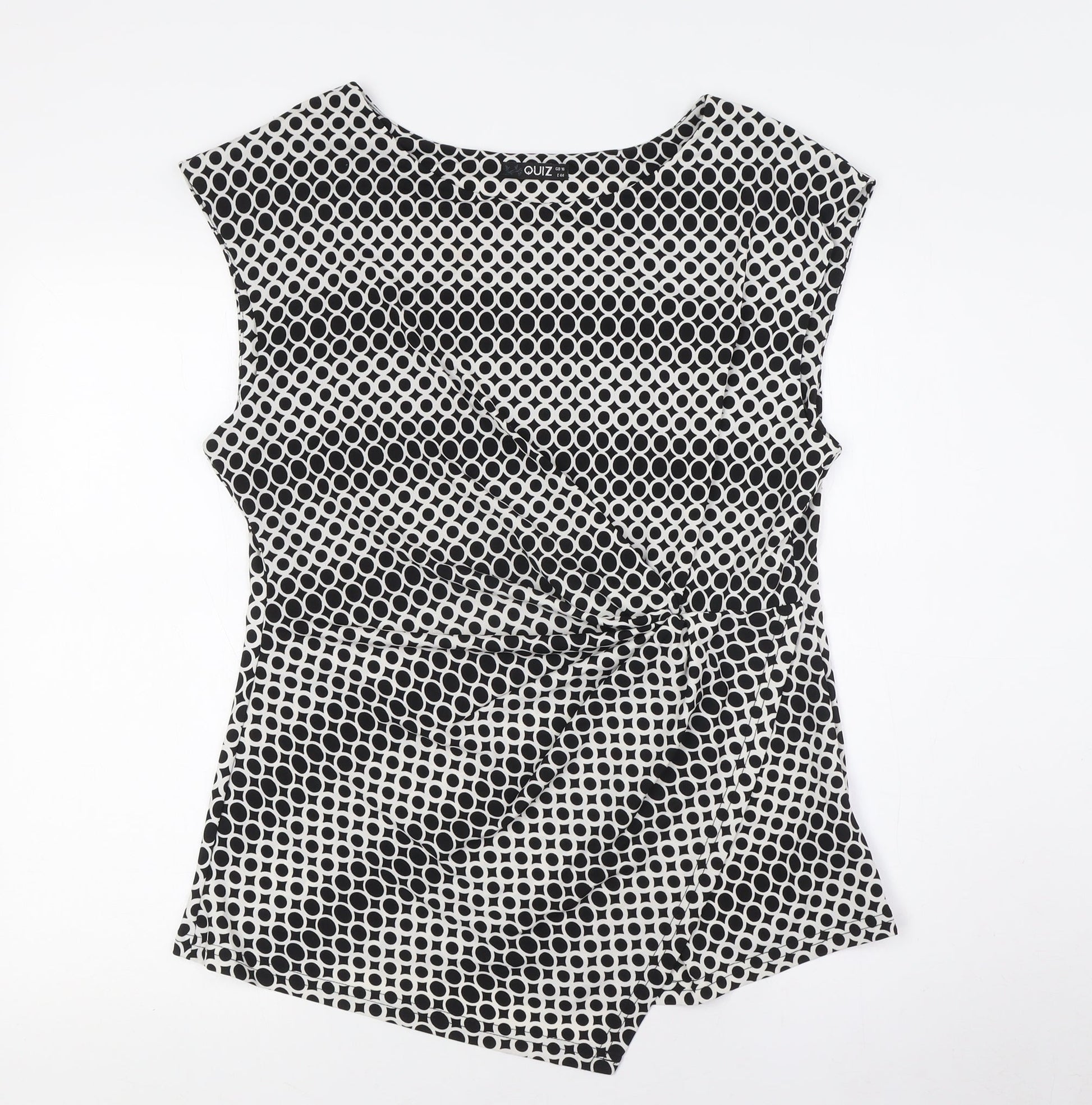 Quiz Womens Black Polyester Basic Button-Up Size 16 Boat Neck - Knot Front
