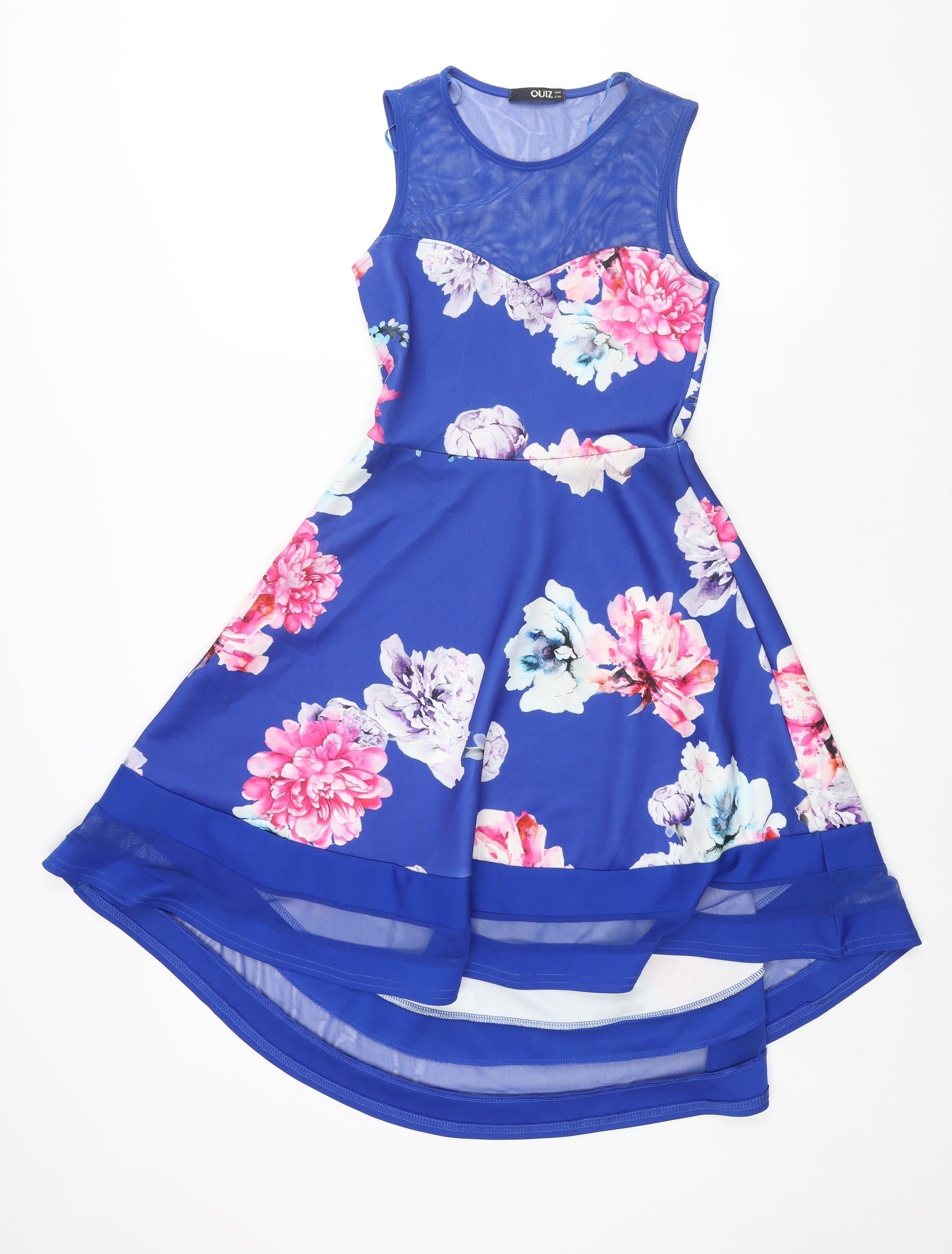 Quiz Womens Blue Floral Polyester Fit & Flare Size 8 Round Neck Pullover