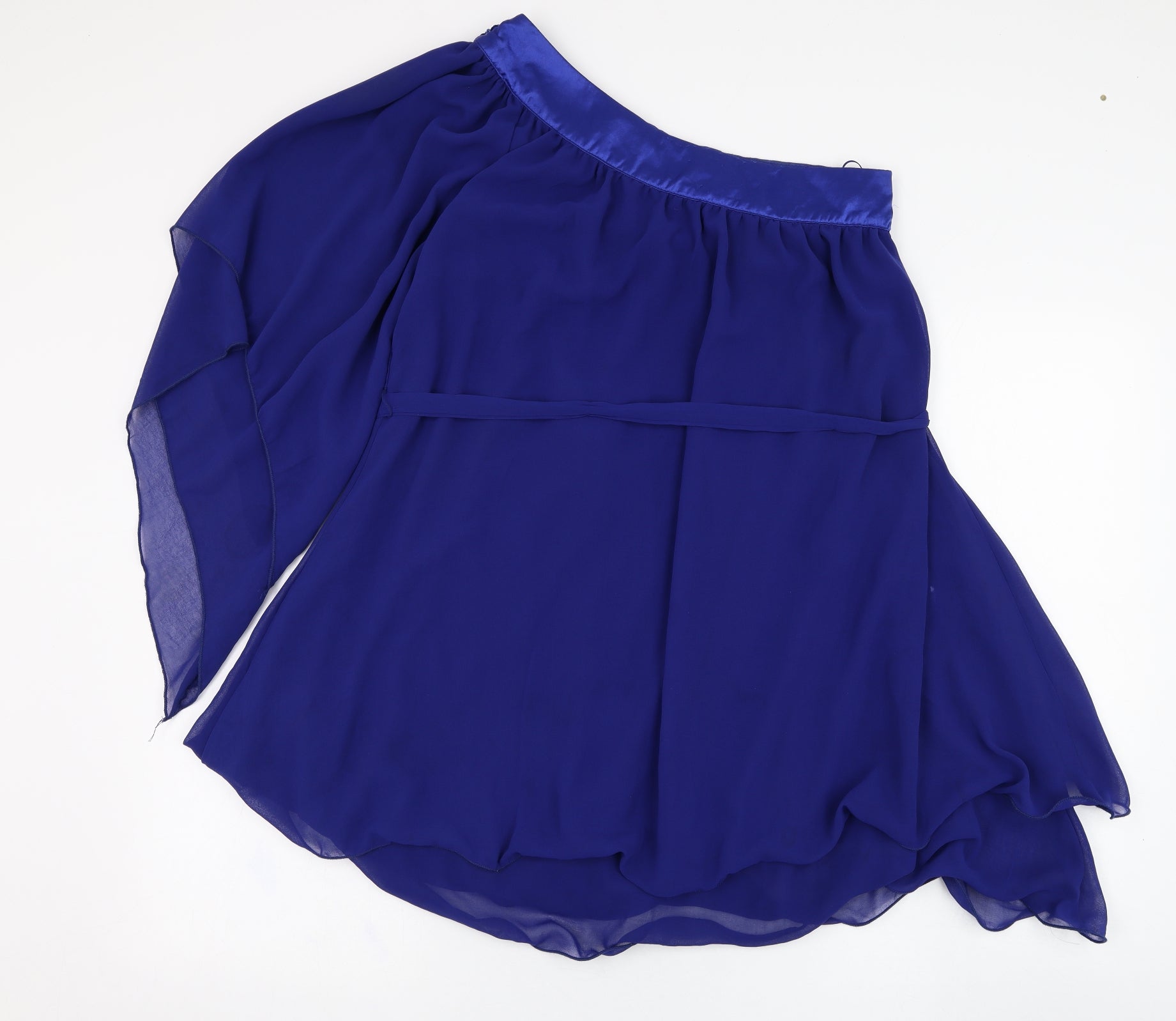 Quiz Womens Blue Polyester Basic Blouse Size 8 One Shoulder