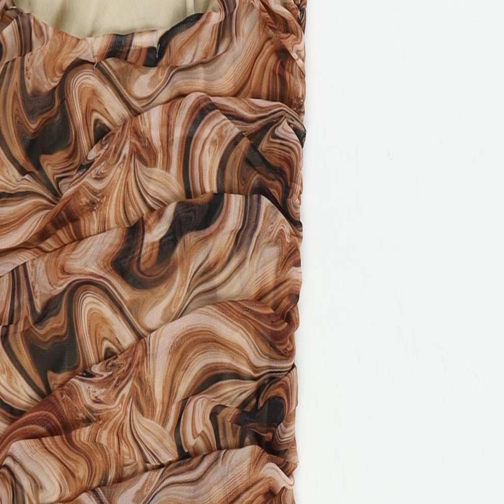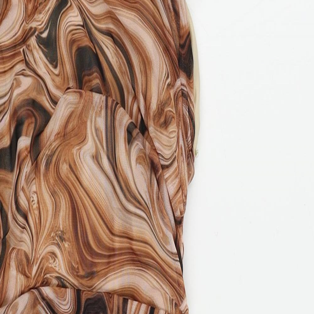 Quiz Womens Brown Geometric Polyester Bodycon Size 10 Square Neck - Ruched