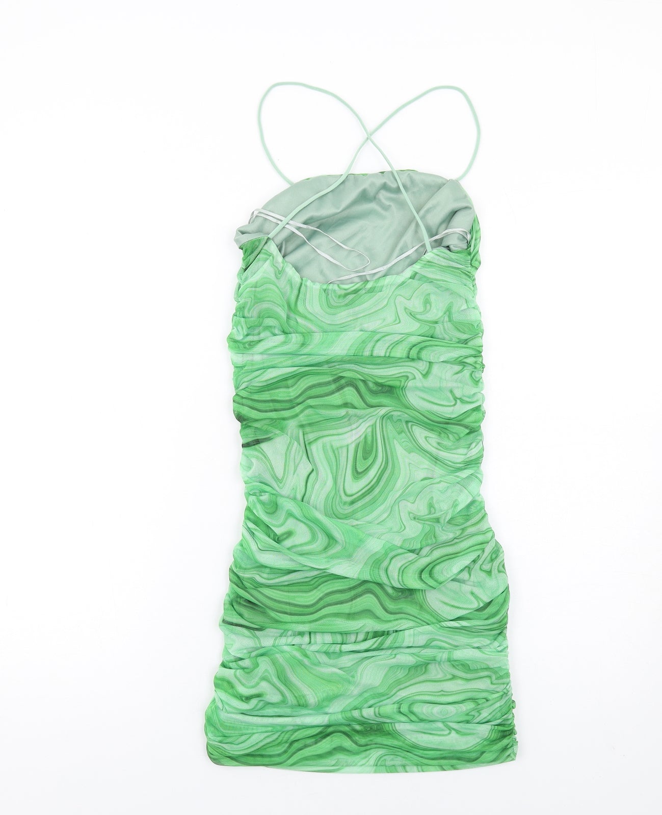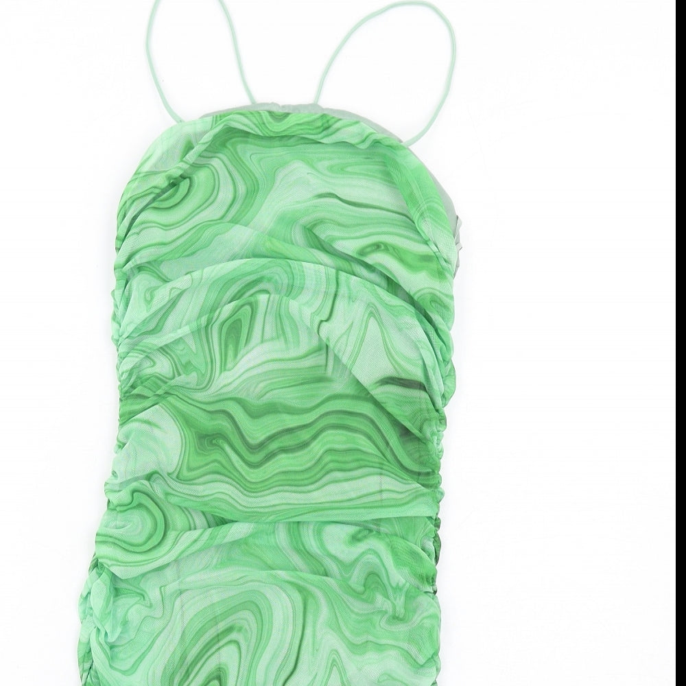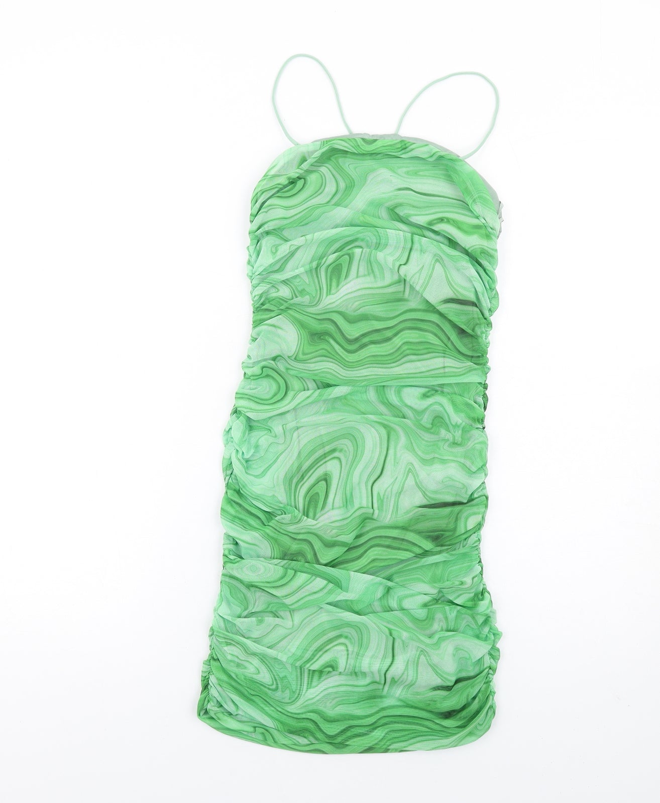 Quiz Womens Green Geometric Polyester Mini Size 10 Square Neck Pullover - Ruched