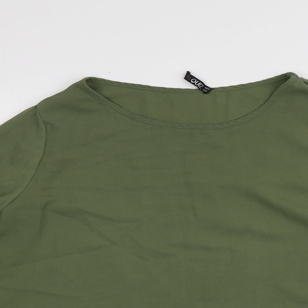 Quiz Womens Green Polyester Basic T-Shirt Size 42 Round Neck
