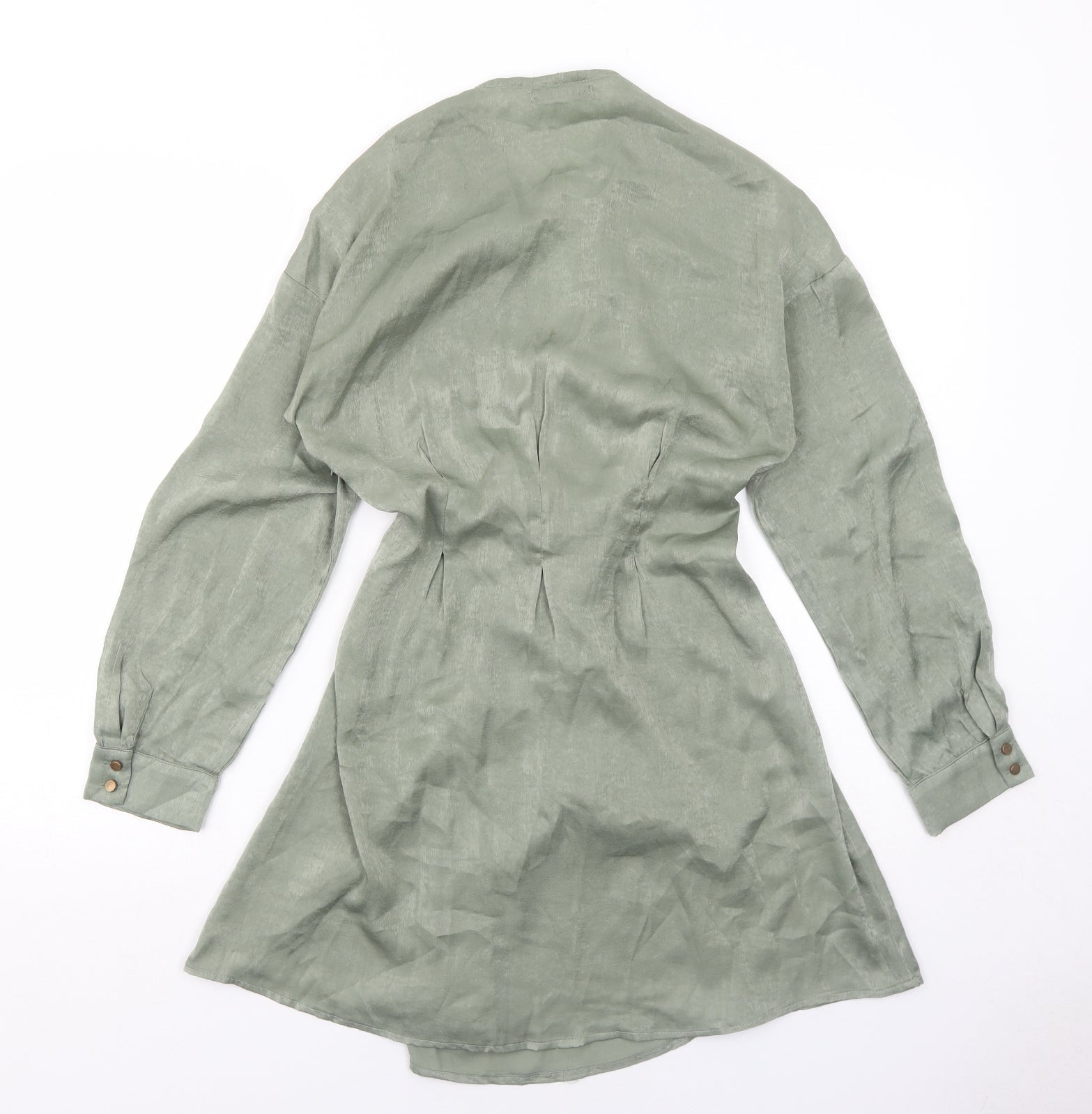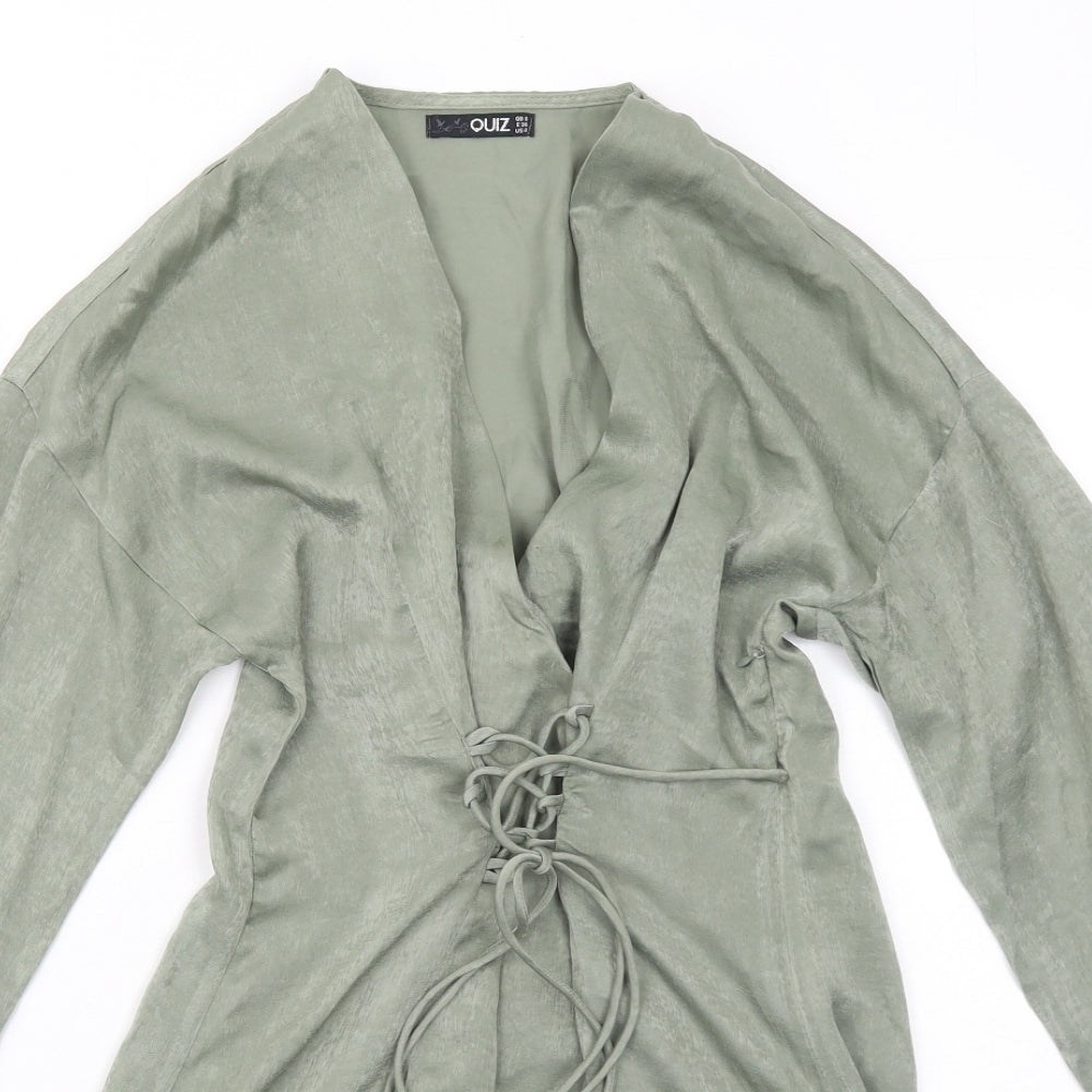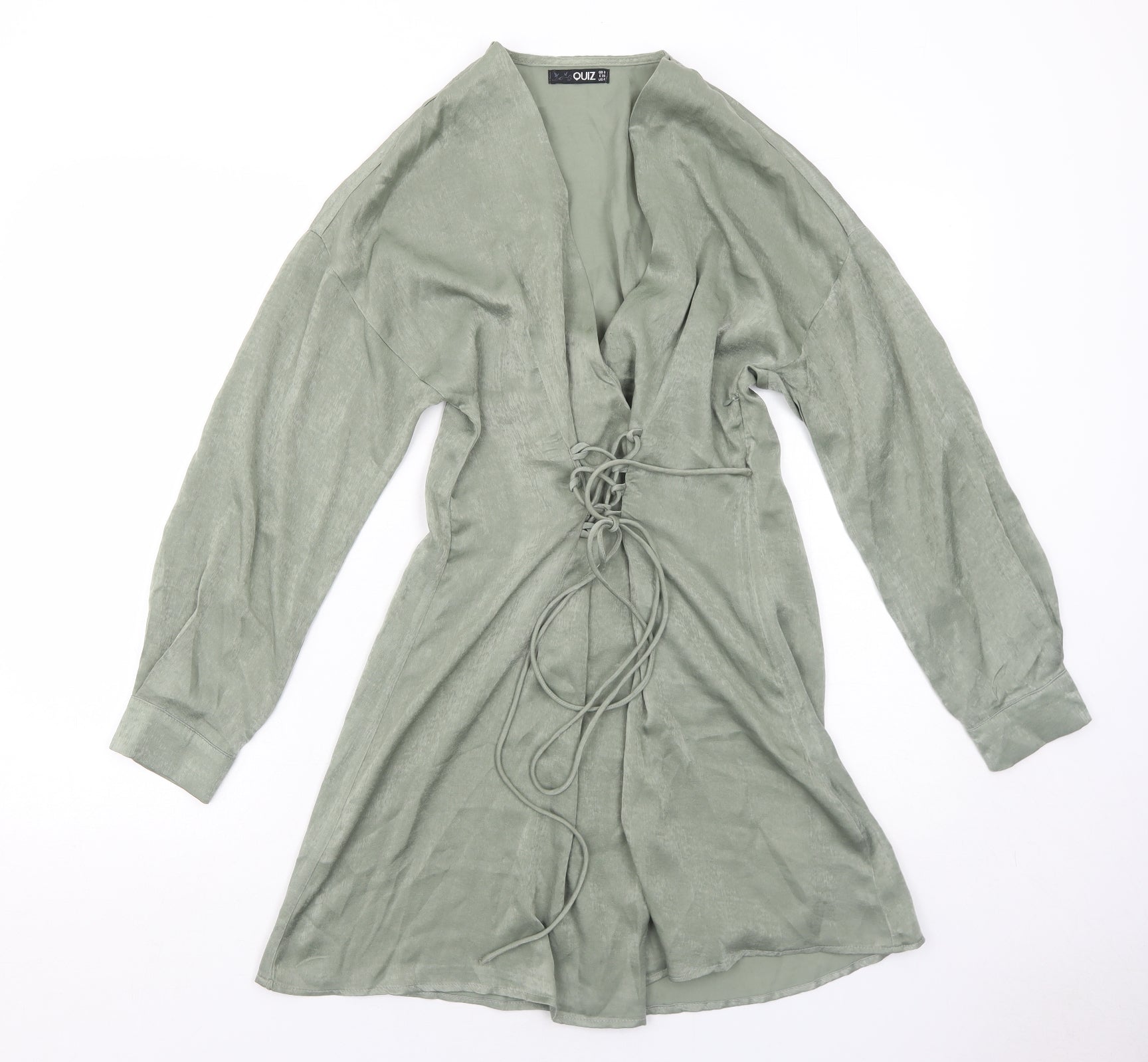 Quiz Womens Green Polyester Skater Dress Size 6 V-Neck Zip
