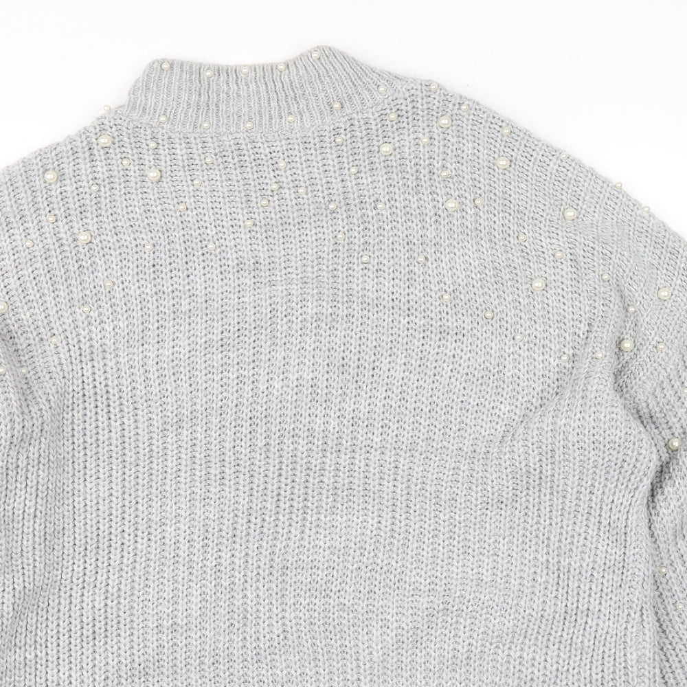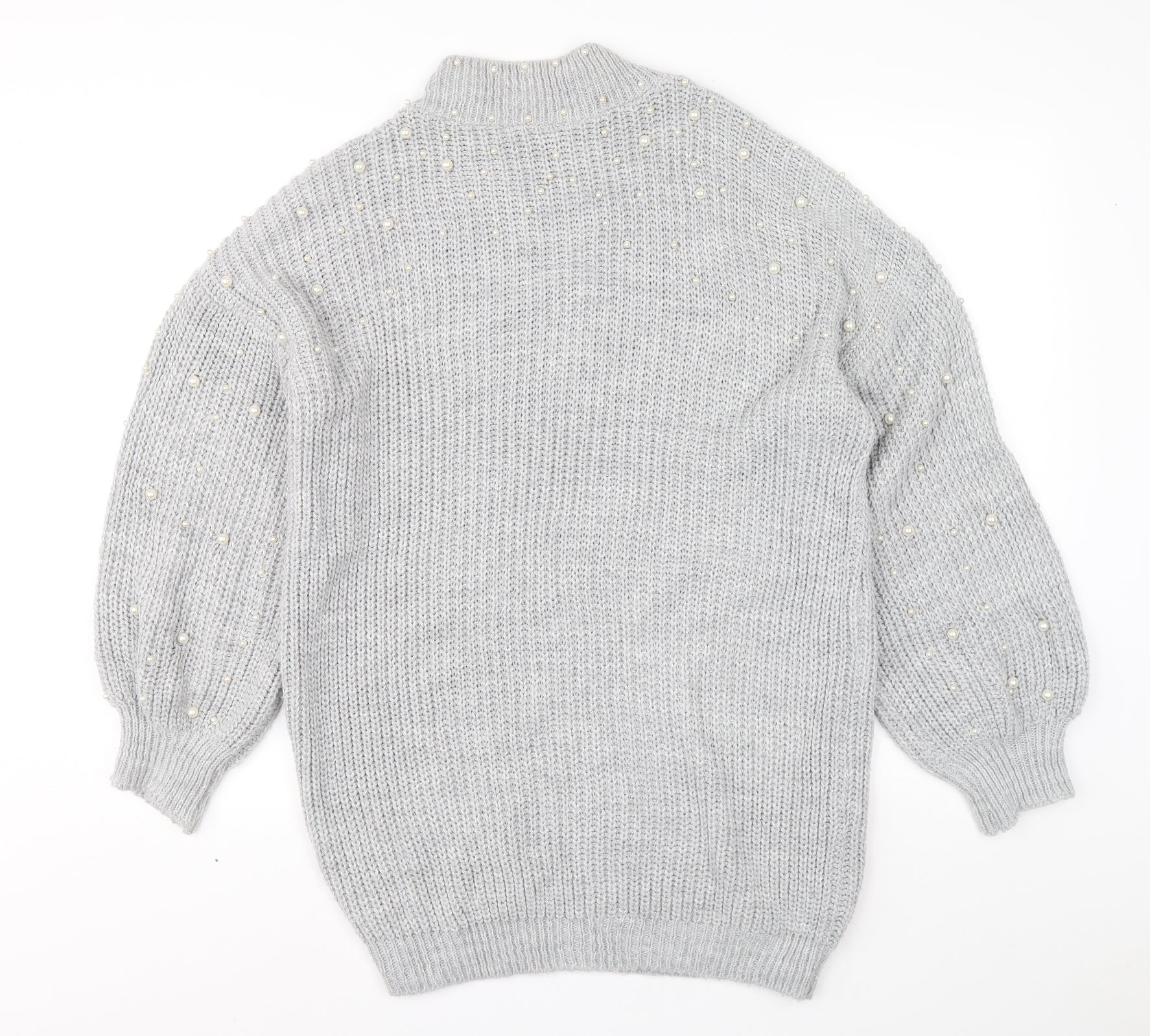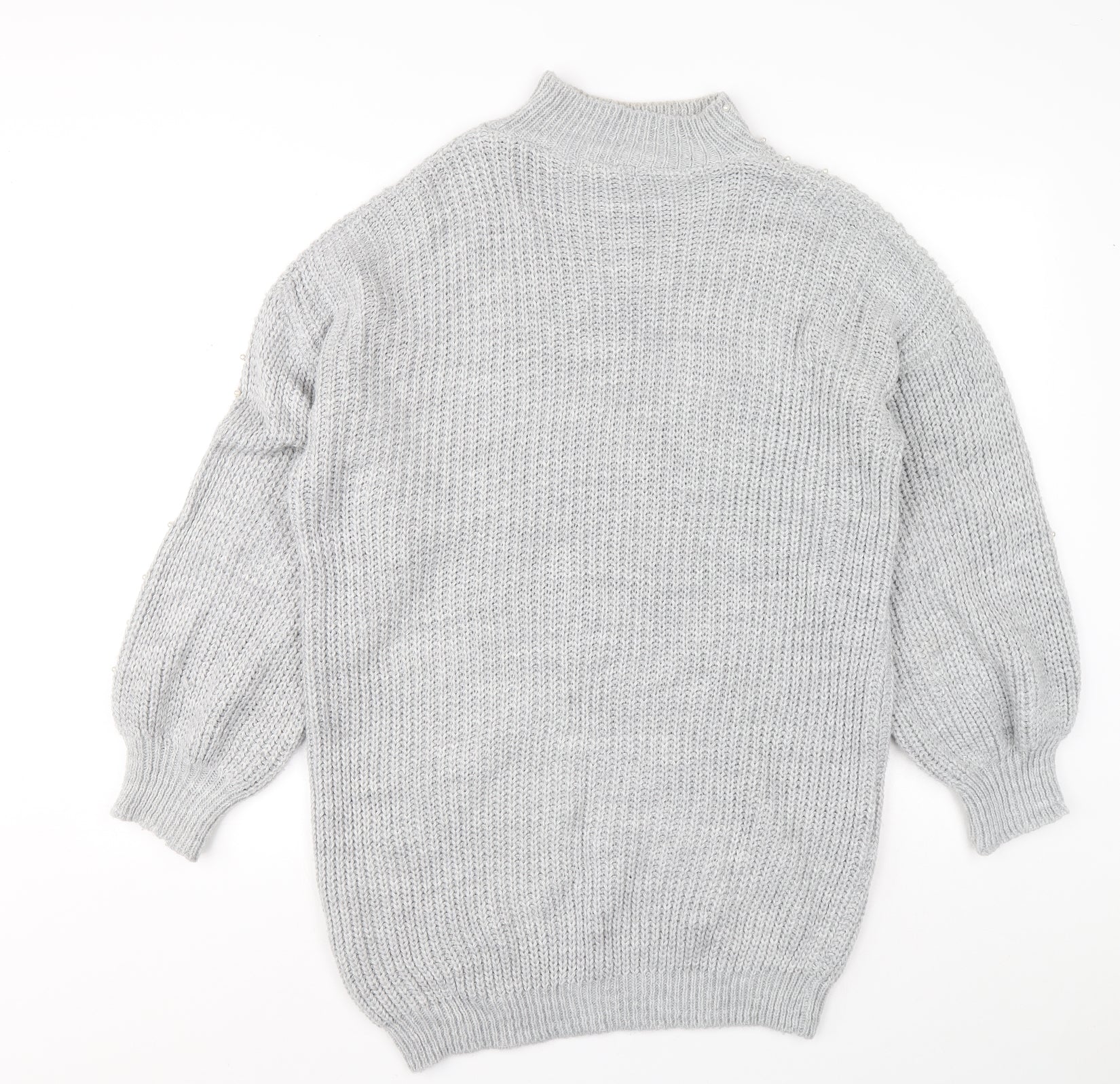 Quiz Womens Grey Acrylic Jumper Dress Size S Mock Neck Pullover - Ballooon sleeve