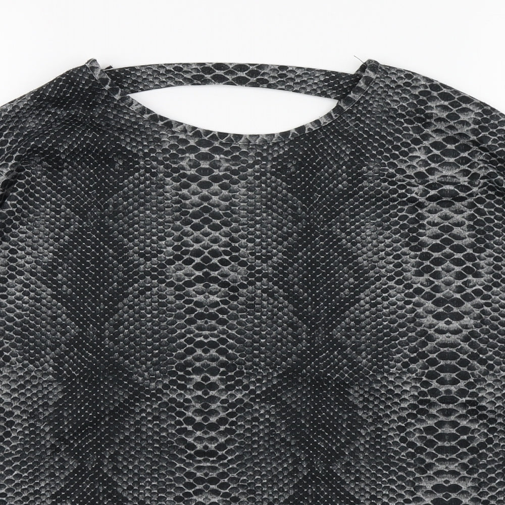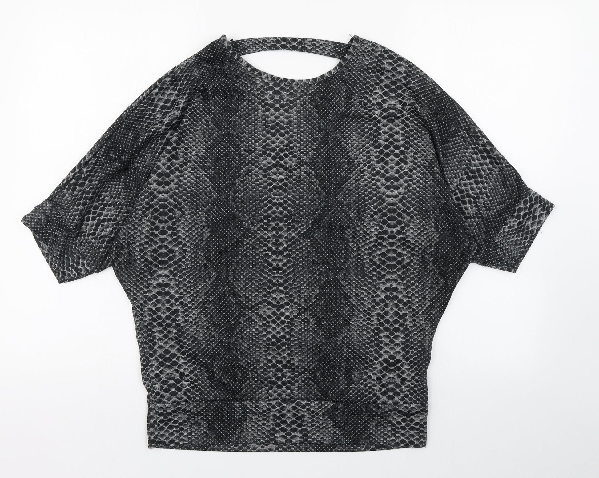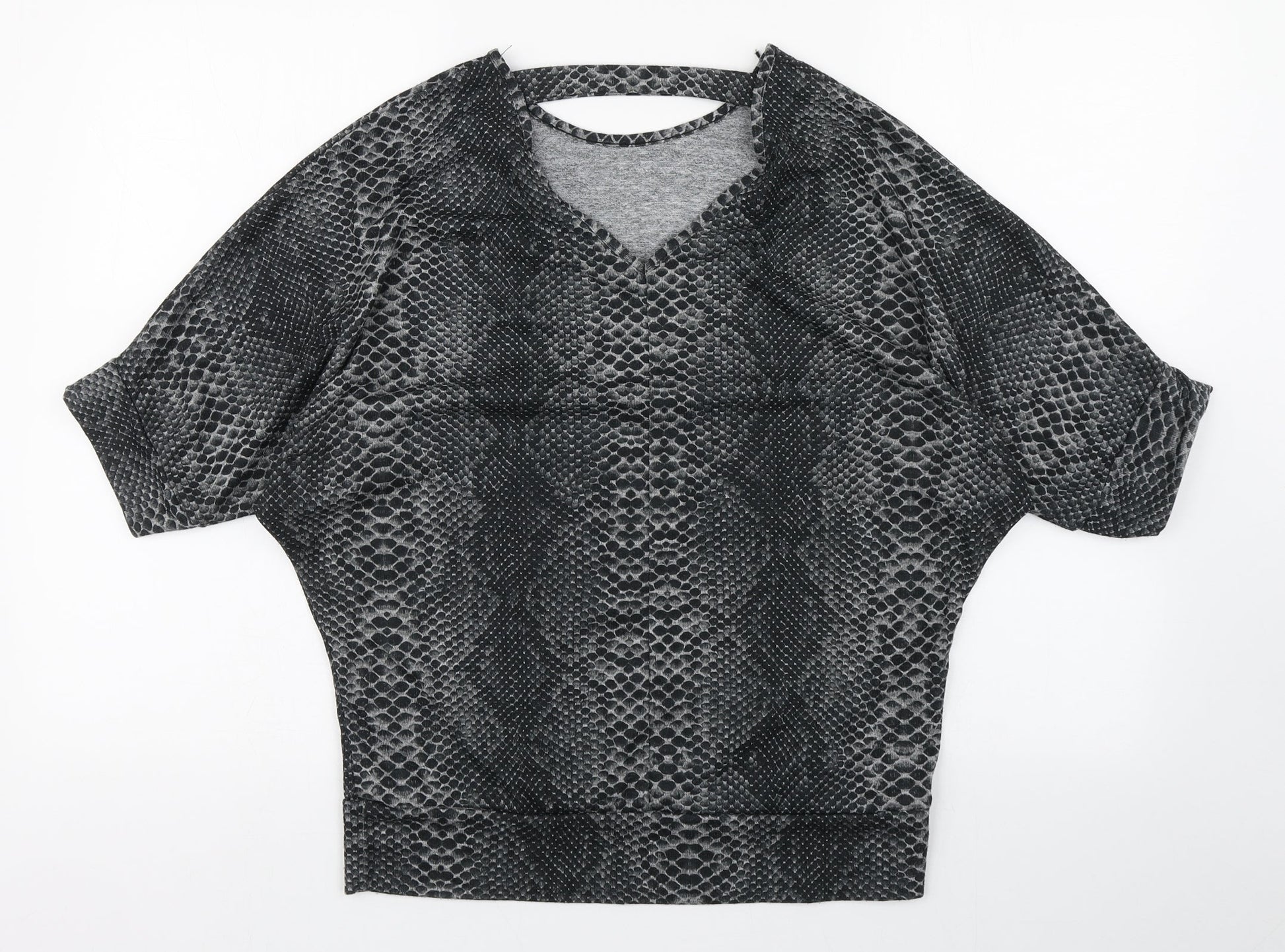 Quiz Womens Grey Animal Print Polyester Basic T-Shirt Size 12 Round Neck