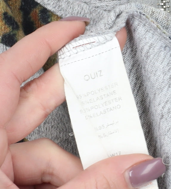 Quiz Women's Grey Leopard Print Blouse, Medium, Casual