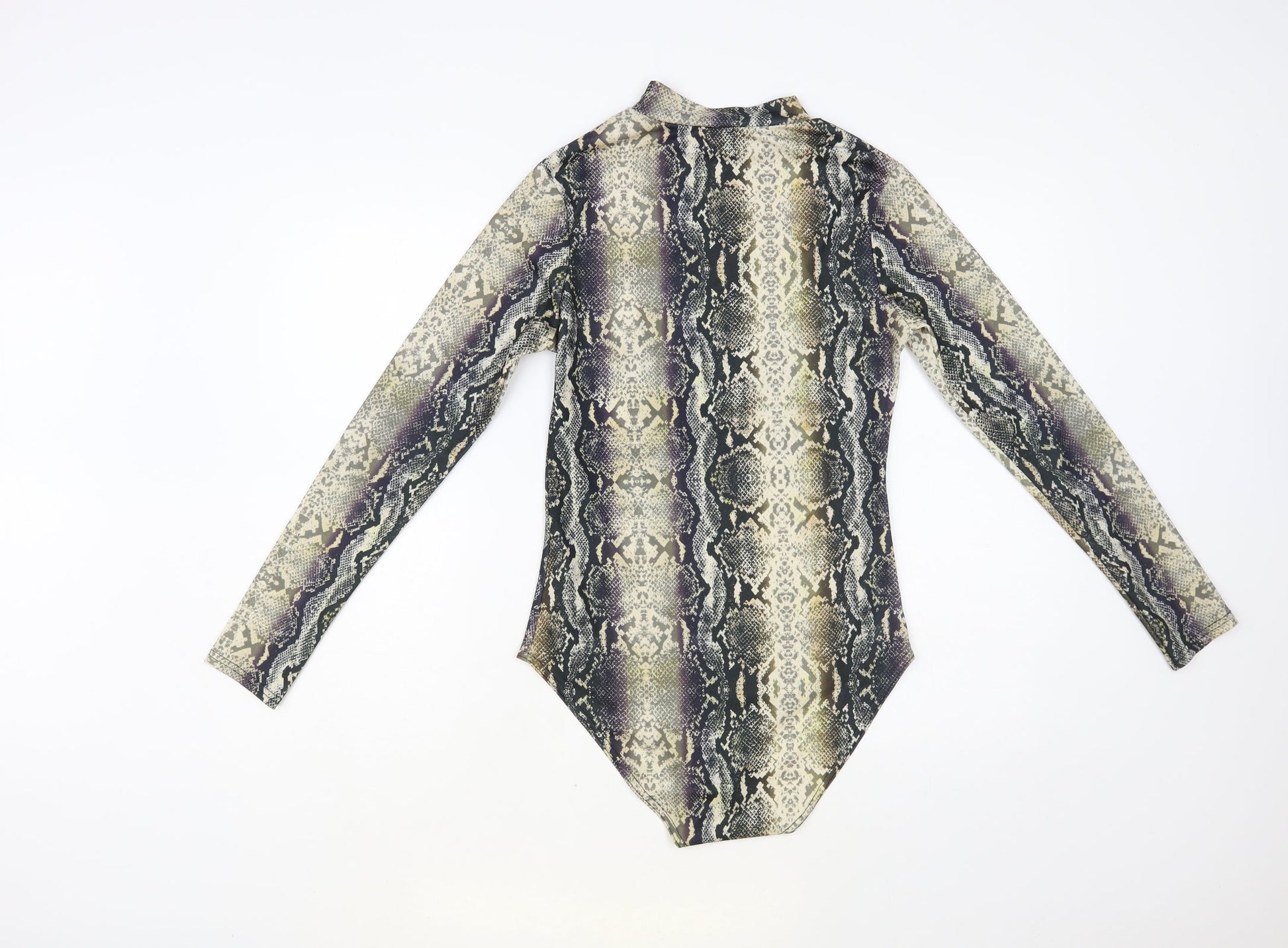 Quiz Womens Multicoloured Animal Print Polyester Bodysuit One-Piece Size 10 Snap - Snakeskin