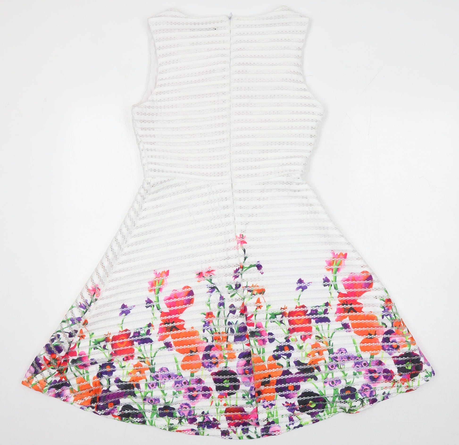 Quiz Womens Multicoloured Floral Polyester Fit & Flare Size 10 Boat Neck Zip