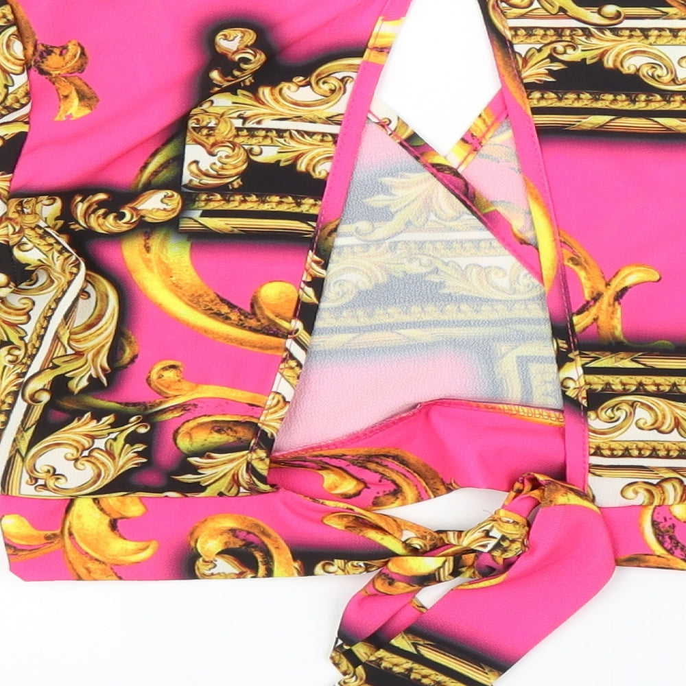 Quiz Womens Pink Floral Cropped Blouse Size 8