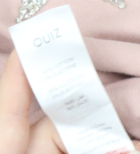 Quiz Women's Pink T-Shirt, Rhinestone Stars, Size L