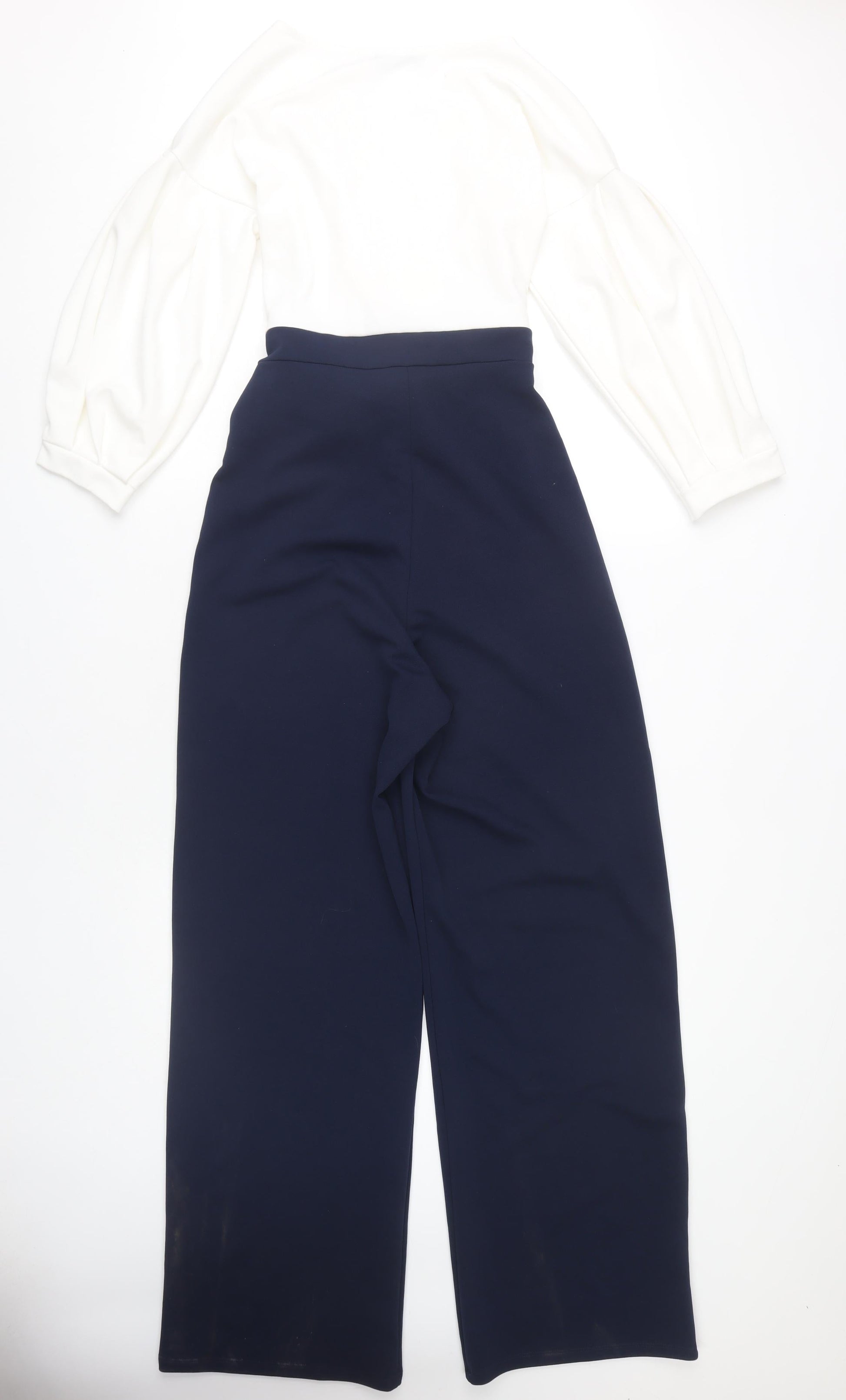 Quiz Women's White and Blue Jumpsuit, Size 12, Belted Style