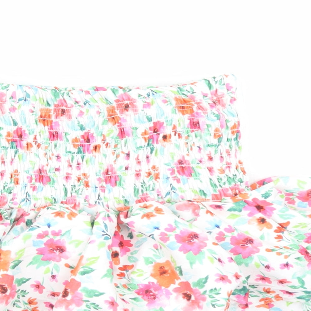 Quiz Womens White Floral Polyester Basic Blouse Size 8 Off the Shoulder