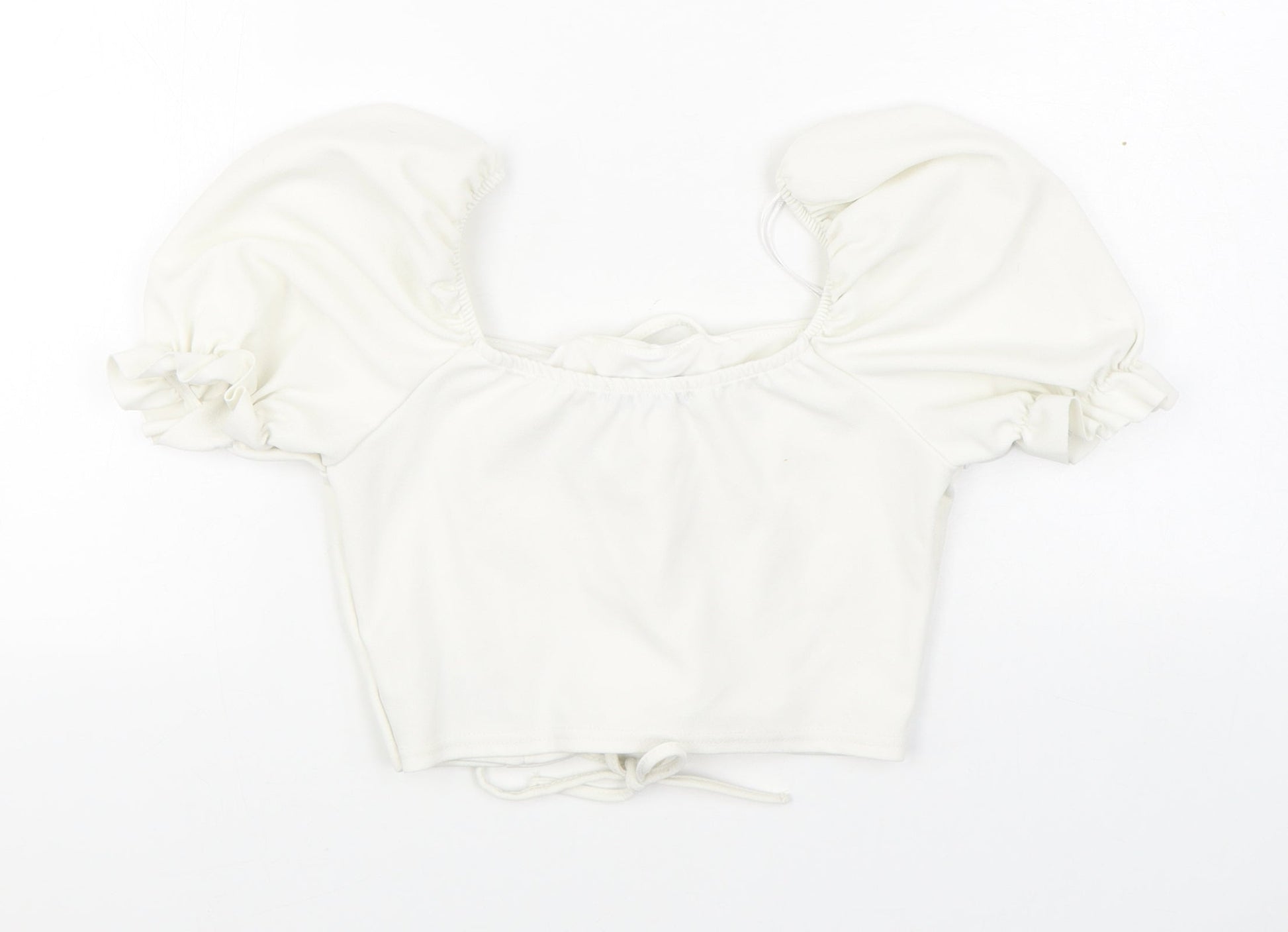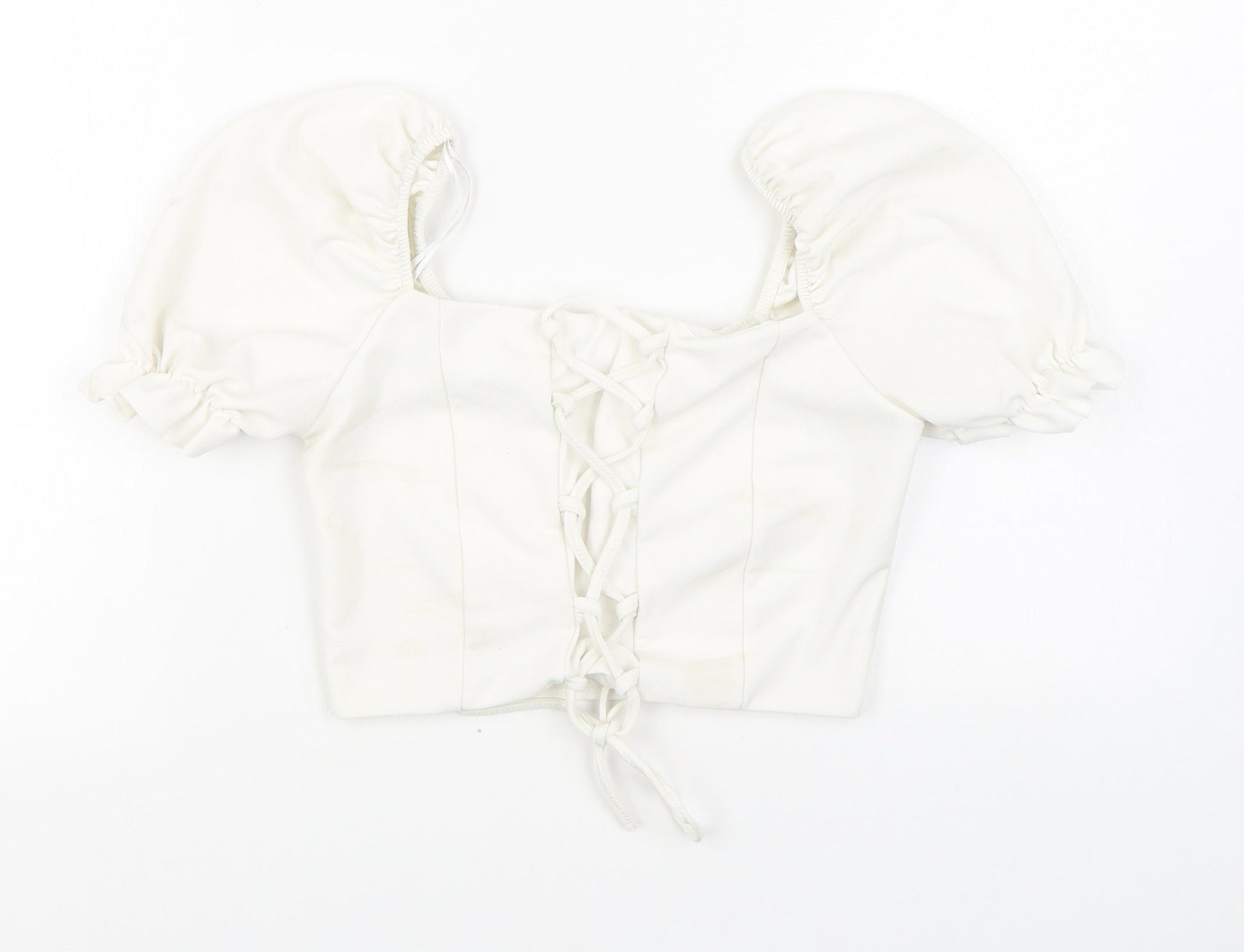 Quiz Womens White Polyester Basic Blouse Off the Shoulder - Lace up detail