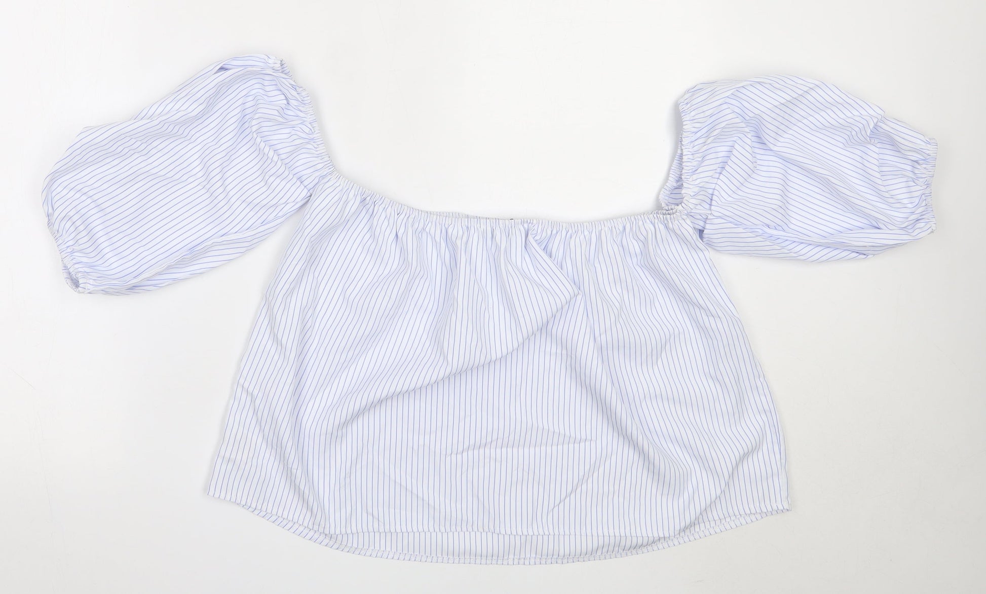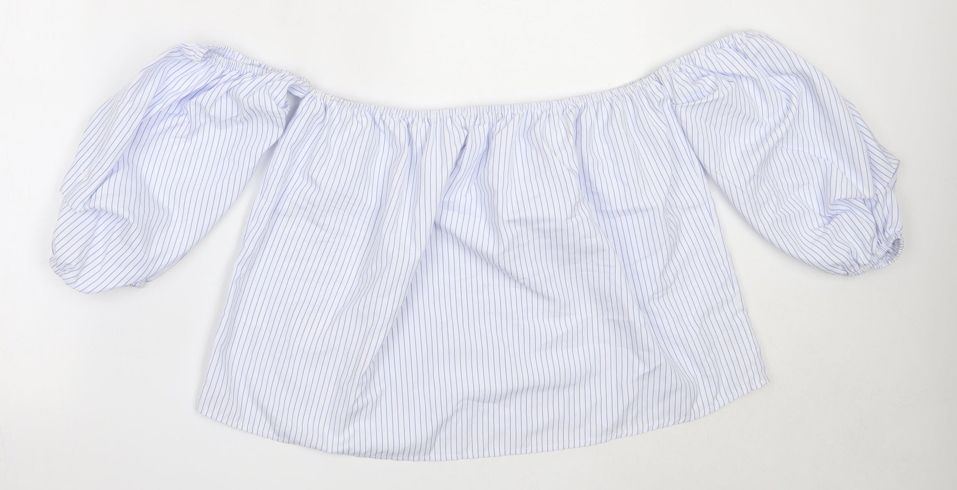 Quiz Womens White Striped Polyester Basic Blouse Size 10 Off the Shoulder
