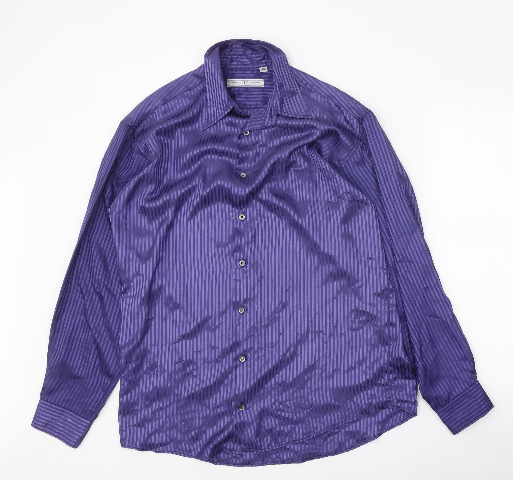 R. I. Clothing Company Mens Purple Striped Polyester Button-Up Size L Collared Button